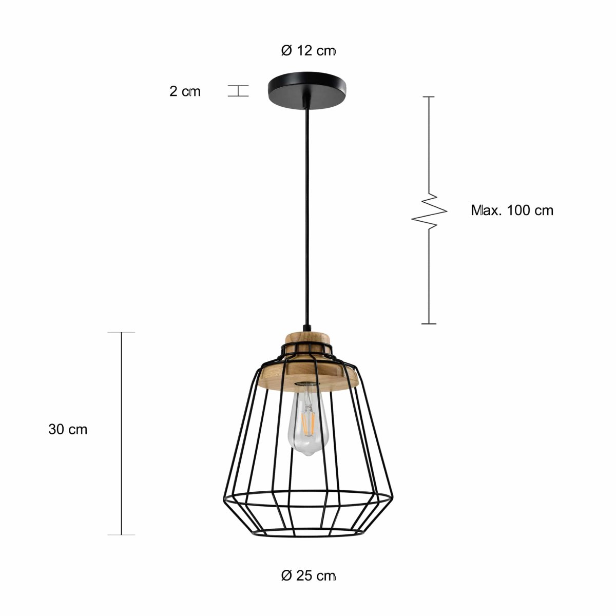 QUVIO Hanglamp landelijk – Draadlamp – Stalen kooi – D 25 cm – Zwart