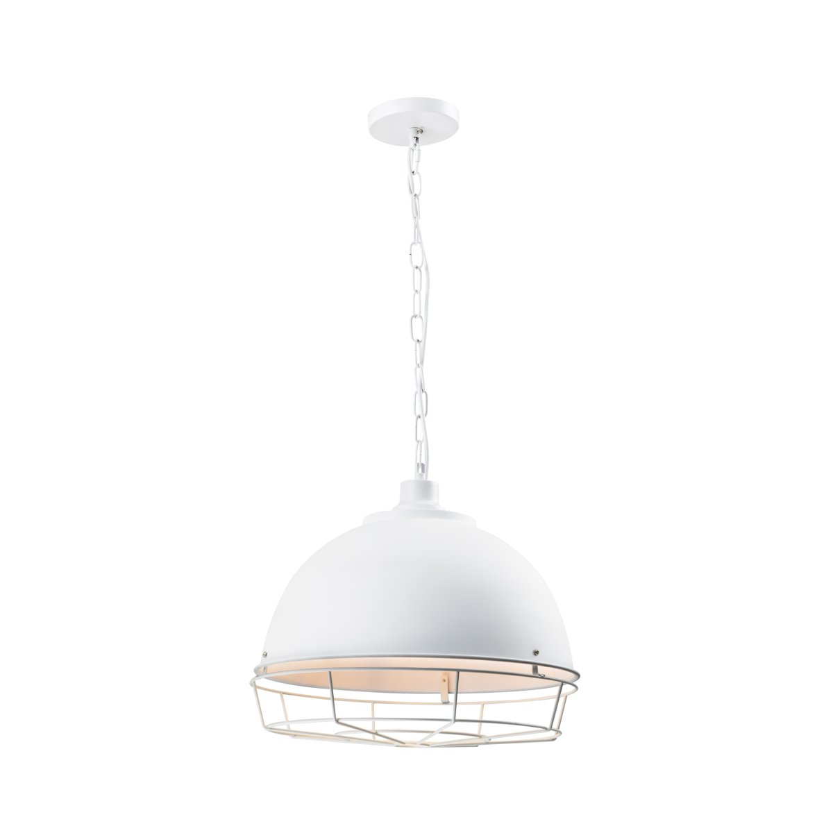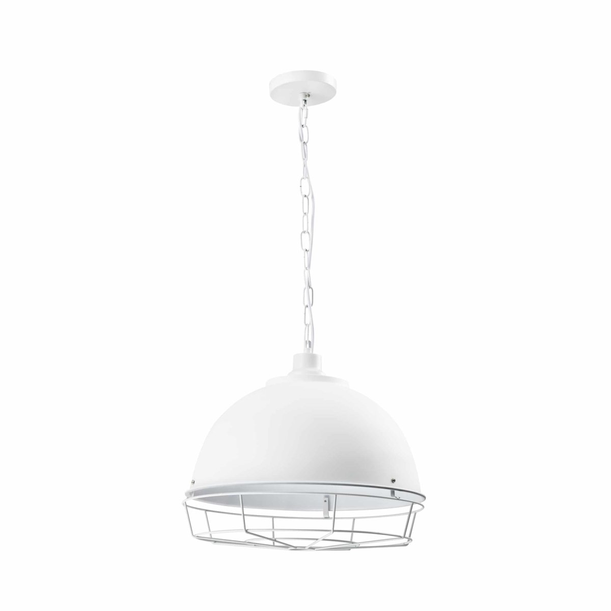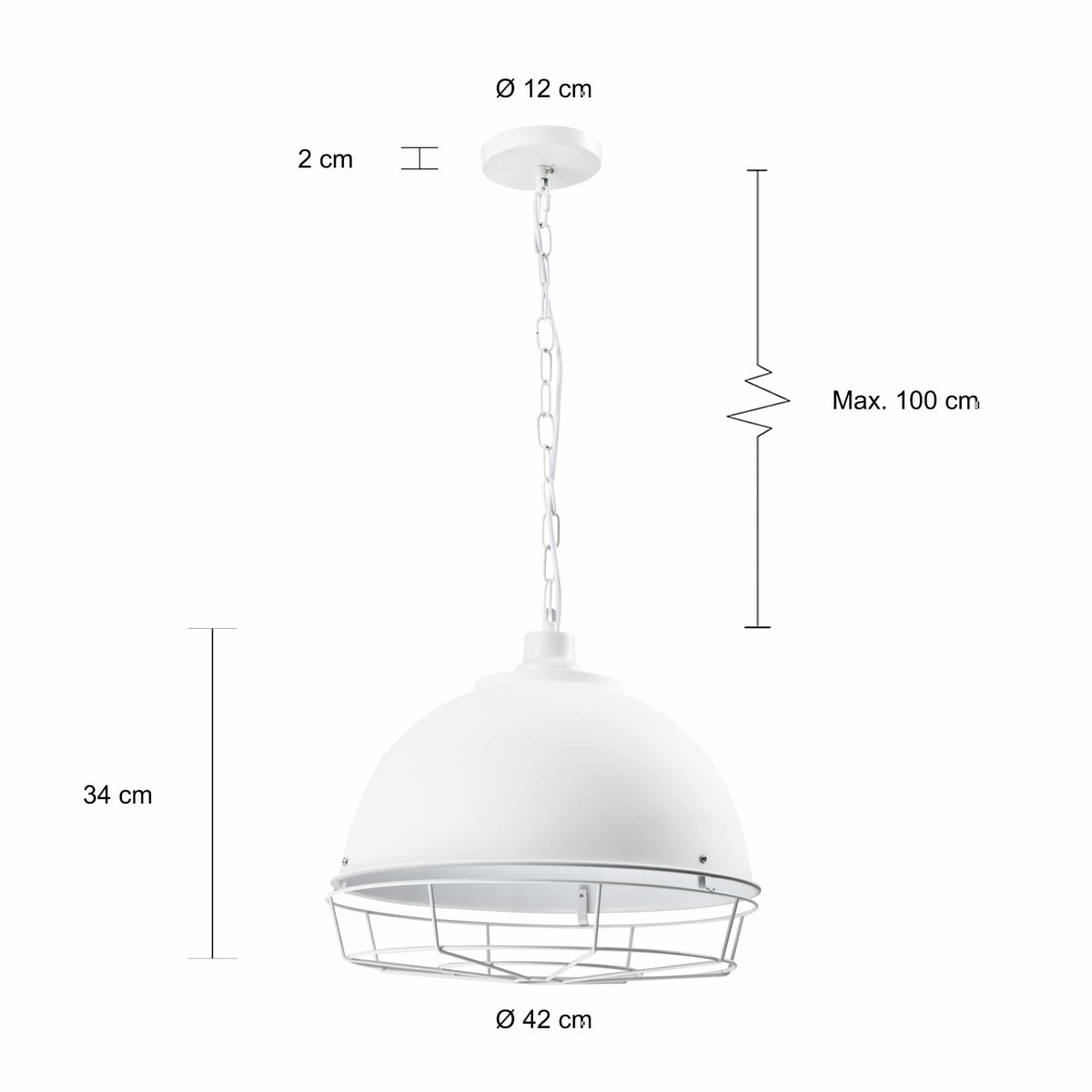 De ketting waaraan de lamp hangt ziet er stoer uit, maar de gladde lampenkap maakt het geheel tegelijkertijd elegant. Het rooster aan de onderkant benadrukt het eigenwijze uiterlijk nogmaals en zorgt voor mooie verlichting. Met deze plafondlamp kun je echt alle kanten op. Hang de lamp boven de eettafel of in de keuken, maar ook in de slaapkamer staat de lamp schitterend. Combineer de lamp zoals jij wilt en bepaal zelf of je de stoere of de elegante kant van de lamp benadrukt. Waar hang jij de landelijke witte hanglamp binnenkort op? Combineer een lichtbron samen met deze lamp. Zo heb je bij levering meteen alles in huis om de lamp op te hangen aan je plafond. Zo kun je er meteen gebruik van maken.