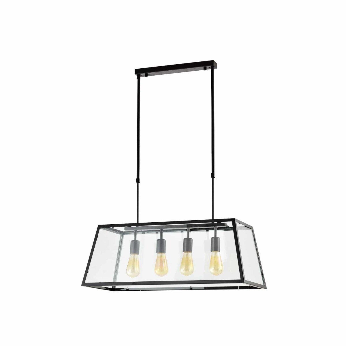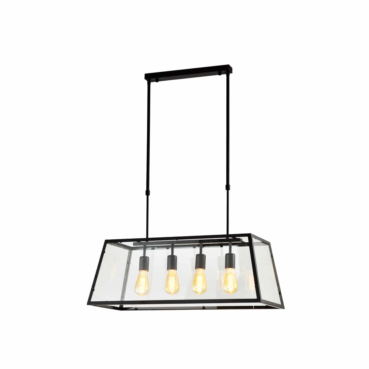 Heb jij een mooie lange eettafel, die je graag goed wil verlichten? Dan is deze moderne hanglamp met 4 lichtpunten een goed idee. Het is een opvallende sfeerlamp met maar liefst 4 lichtpunten. Om deze lichtpunten heen, zit een glazen bak met zwarte stalen spijlen. Het resultaat is een massieve, maar tegelijkertijd doorzichtige lamp. Je geniet van veel licht met deze plafondlamp en haalt meteen een bijzondere eyecatcher in huis. Bovendien bepaal je zelf hoe hoog of laag je de lamp hangt. De spijlen zijn verstelbaar, waardoor deze minimaal een lengte van 58 centimeter en maximaal een lengte van 100 centimeter hebben. Dat maakt deze lamp extra bijzonder.