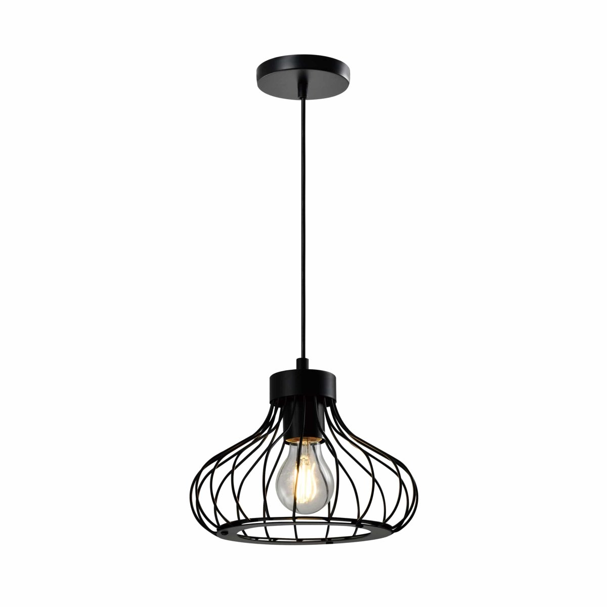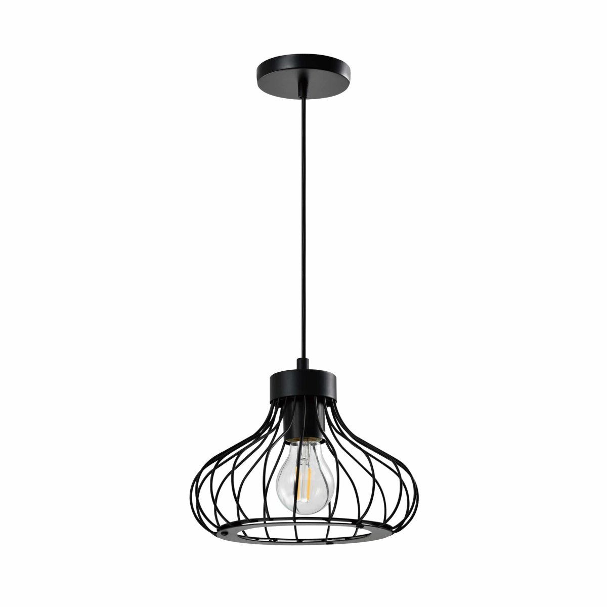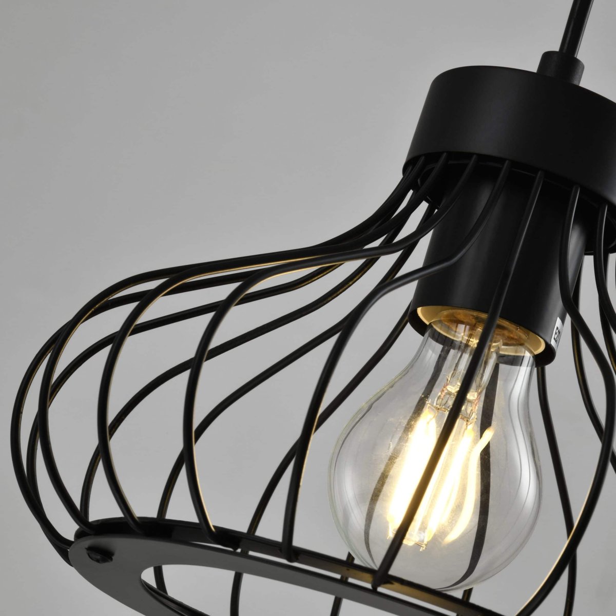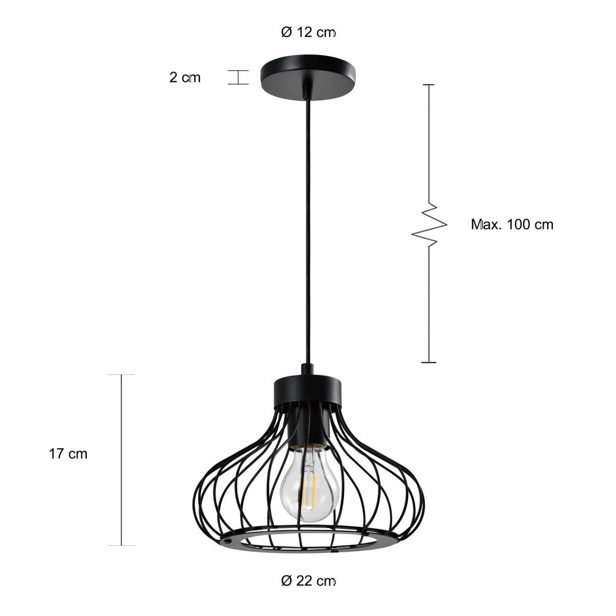Niet alleen zorgt het design van de zwarte moderne draadlamp voor een eigenzinnig karakter, ook zorgt het voor opvallende verlichting. Je ziet de lichtbron zitten en het licht valt door de gaten tussen het draadstaal. Hierdoor krijg je een diffuus licht, met een mooi effect. Aan de onderkant van de lamp valt het licht mooi door de ronde opening heen. Zo combineert de lamp praktisch met stijlvol.