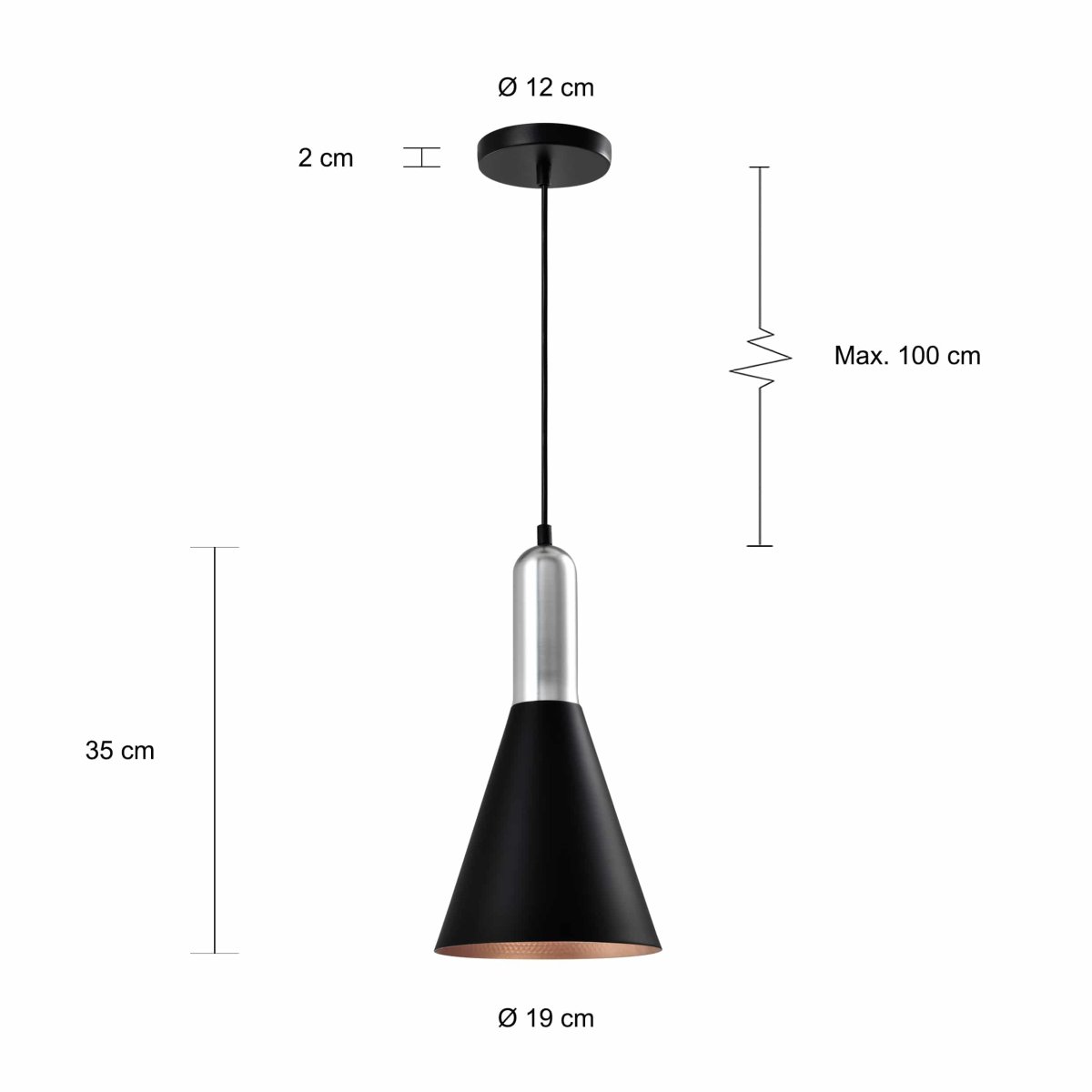 Stijl en functionaliteit komen perfect samen in deze moderne kegelvormige hanglamp in de kleur zwart