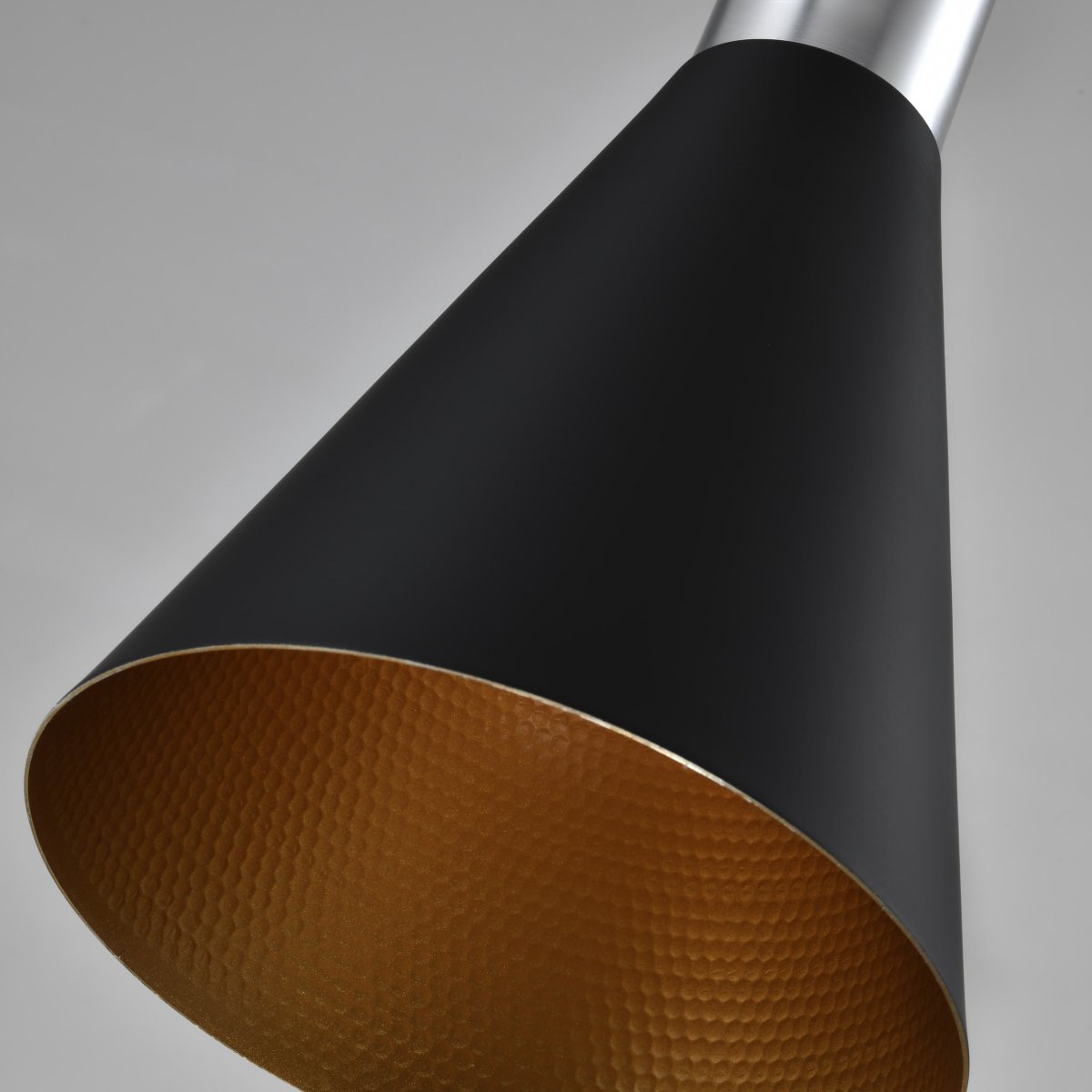 De zwarte moderne kegelvormige hanglamp werkt op een reguliere E27 fitting