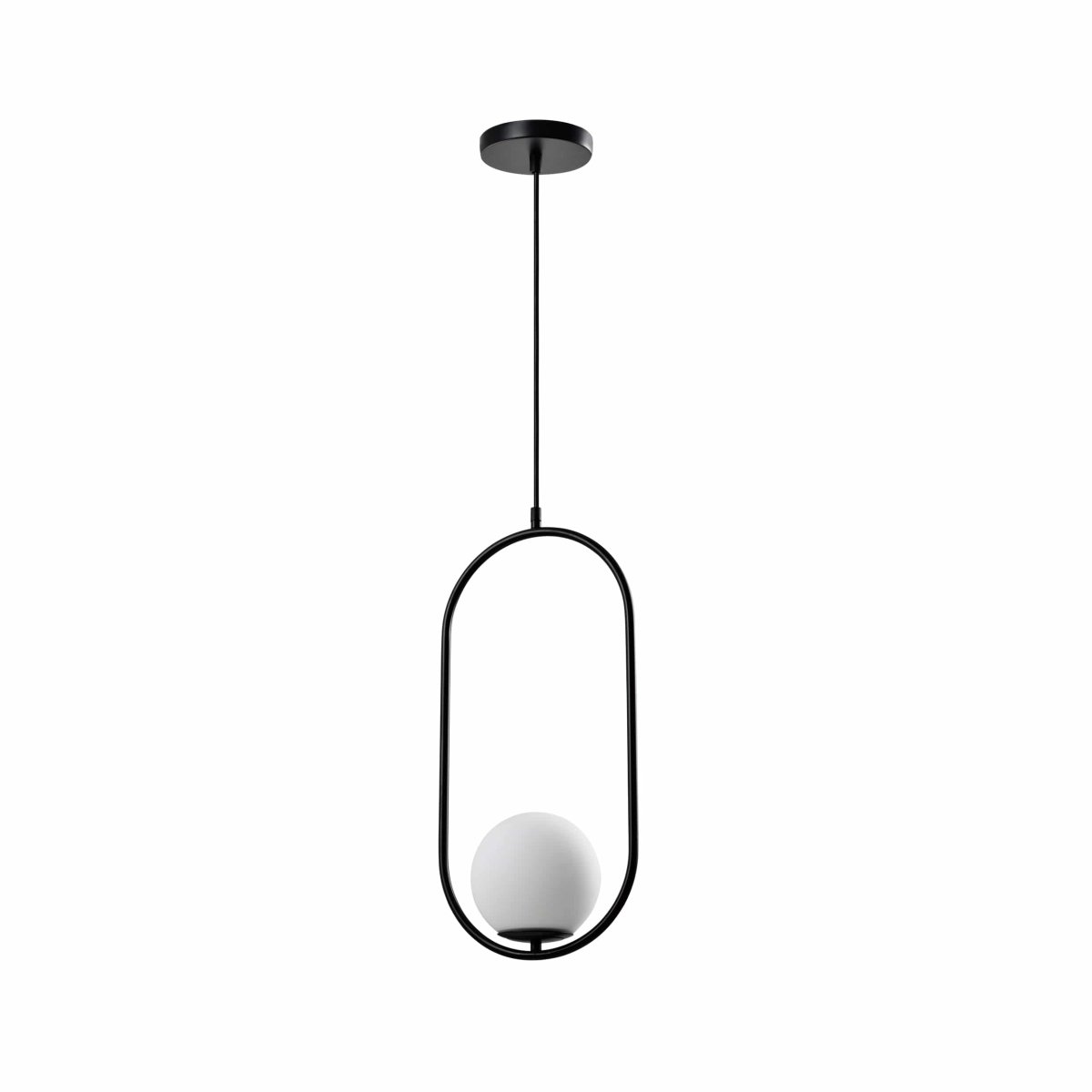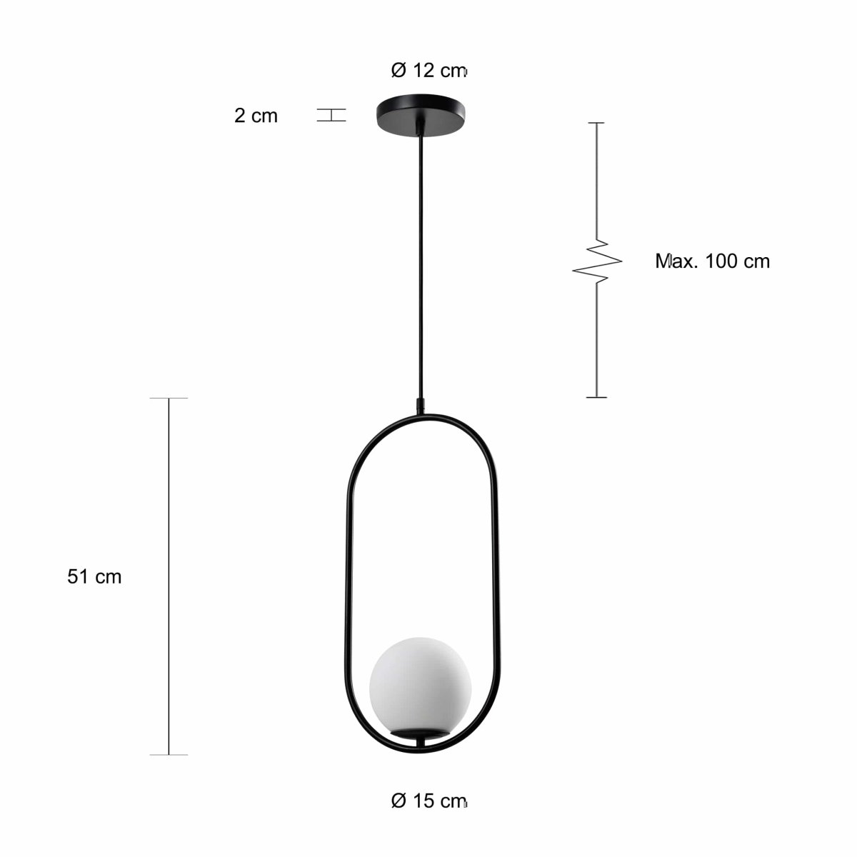 Door de opvallende glazen bol van 15 centimeter doorsnede, heeft deze moderne langwerpige hanglamp in het zwart wel iets weg van de volle maan. De bol geeft prachtige verlichting en zet jouw kamer in een nieuwe licht. Het zwarte metalen frame om de bol heen, omlijst het geheel. Deze zorgt bovendien voor een moderne en strakke look, die perfect in een modern interieur past. Maar ook in een industriële inrichting misstaat deze sfeerlamp zeker niet. De plafondlamp geeft elke kamer een unieke twist.