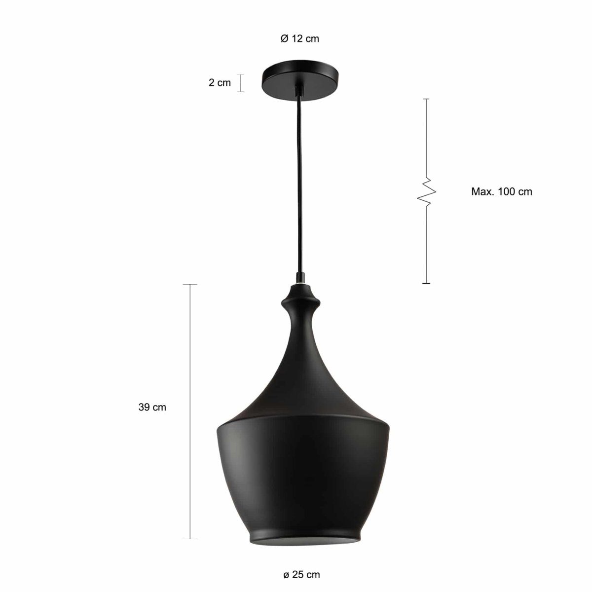 Op zoek naar een moderne hanglamp of toch liever in een vintage of industriële stijl? Deze unieke moderne hanglamp heeft een beetje van elk van deze stijlen. Strakke en ronde vormen, stijlvol en speels, kwaliteit en functie, het zijn maar een paar kenmerken van deze bijzondere plafondlamp van QUVIO. De lampenkap is gemaakt van aluminium en heeft een diameter van 25 cm en een hoogte van 39 cm. De maximale snoerlengte is 100 cm en kun je eenvoudig inkorten indien nodig. De lichtbron is niet inbegrepen.