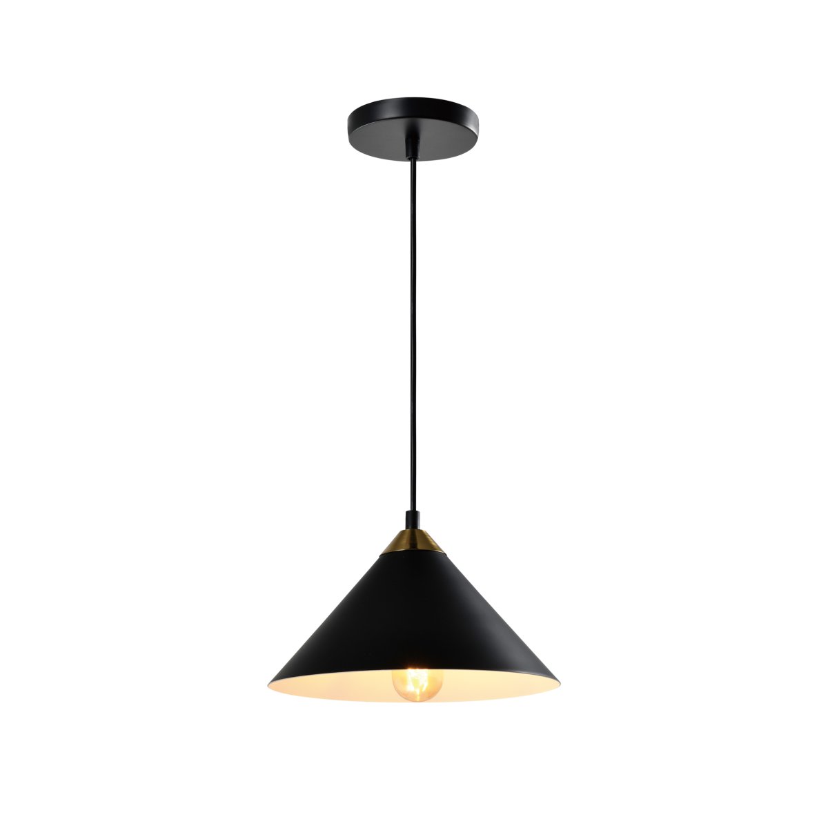 De strakke lijnen van deze zwarte retro kegelhanglamp zijn de kracht van het design. De vorm van de lampenkap is een knipoog naar het verleden, maar laat zich ook perfect combineren in een modern ingericht huis. De gouden kop aan de bovenkant van de kap geeft het geheel een luxe uitstraling. Hierdoor past de lamp goed in diverse kamers. Creëer bijvoorbeeld een chique eethoek, waar je veel heerlijke diners gaat hebben. Of hang de lamp in de slaapkamer en geniet elke avond van je eigen rustgevende plekje.