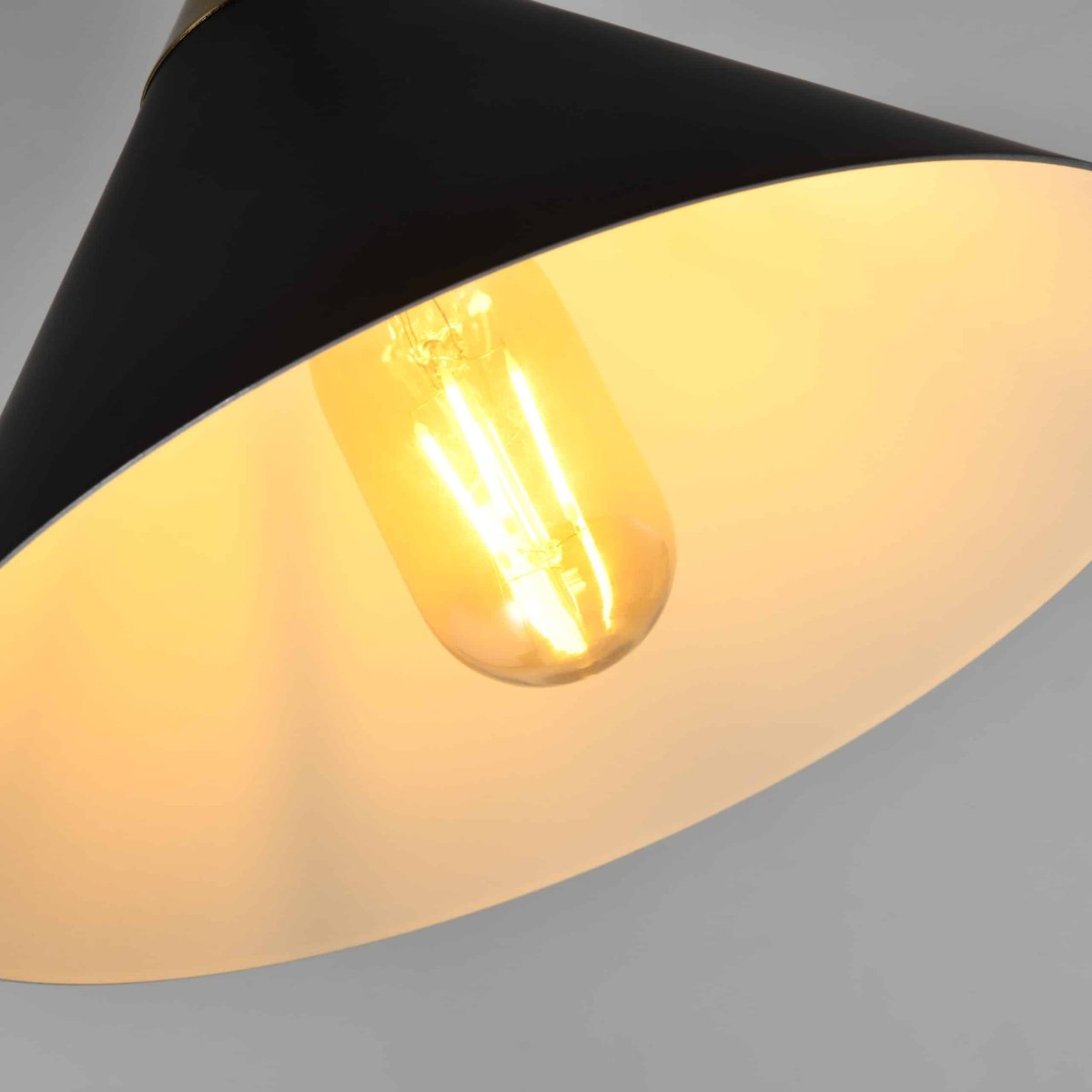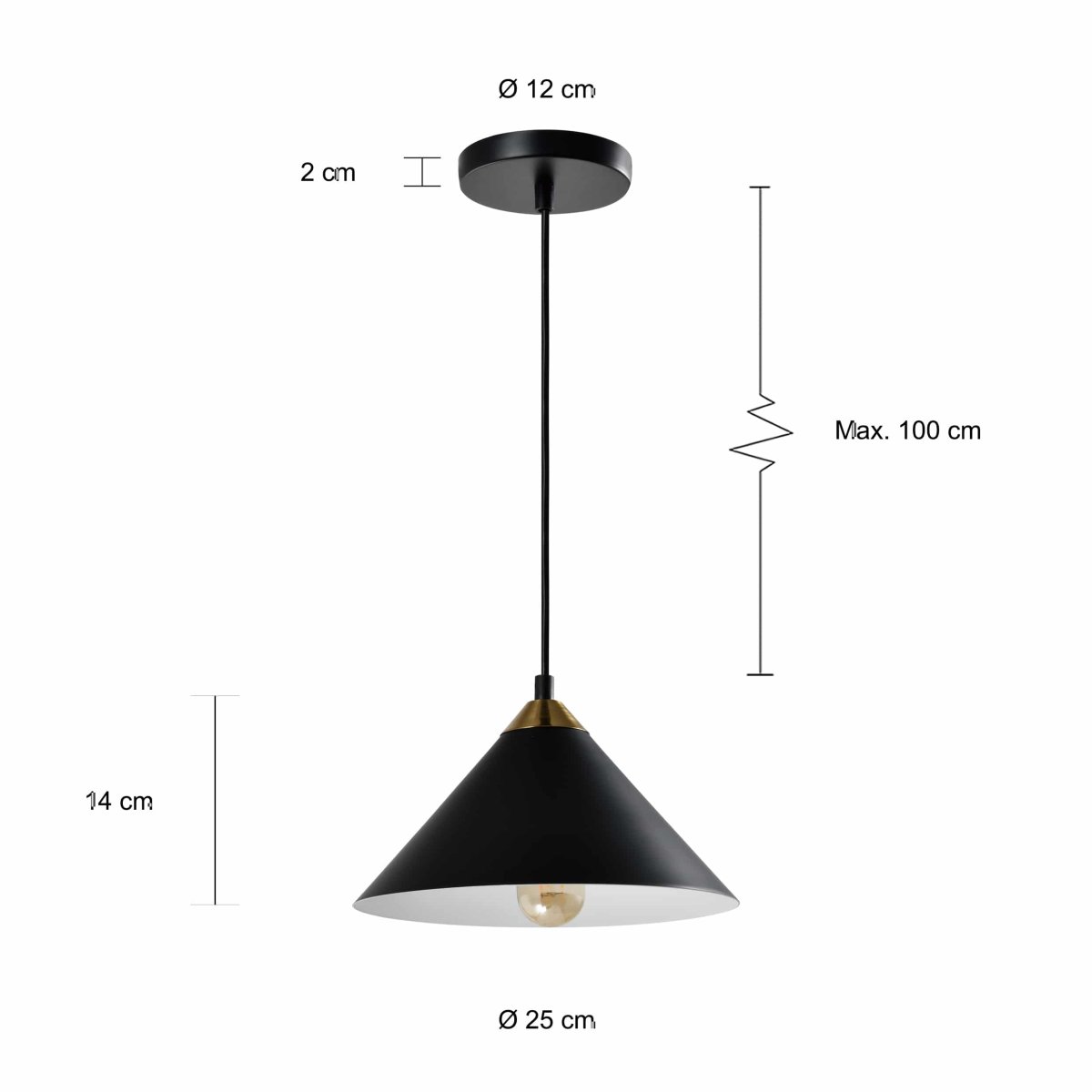 Zoek jij een chique sfeerlamp voor aan je plafond? Dan is deze zwarte retro kegelhanglamp precies wat je nodig hebt. De zwarte lamp heeft een gouden kop, waardoor het geheel een luxe uitstraling krijgt. De kegelvormige lampenkap is bovendien een knipoog naar het verleden, wat van deze lamp niet alleen een chique, maar ook een retro hanglamp maakt. Hang jij de lamp boven je eettafel, je bed of in de zithoek?