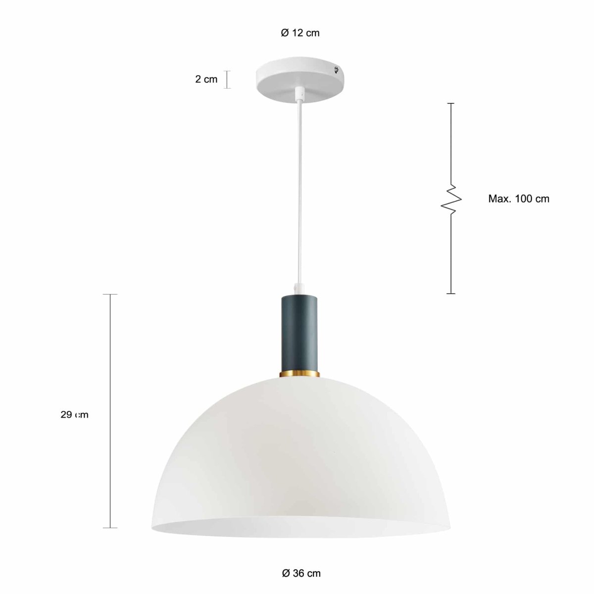 De QUVIO blauwe lamp heeft klein karakter met een diameter van 36 centimeter en een hoogte van 29 centimeter. De lamp wordt geleverd met een lange kabel, zodat je zeker weet dat je de lamp altijd op de perfecte hoogte op kunt hangen. Gebruik voor deze lampenkamp een lichtbron met een grotere fitting (E27). Door de gouden koperen ring geeft de hanglamp direct veel sfeer aan je interieur en het gekleurde metaal zorgt voor een stoere touch aan je interieur. Naast de kleur wit is deze hanglamp ook verkrijgbaar in de kleur zwart. Deze witte hanglamp is goed te combineren met andere moderne meubels. Doordat de hanglamp niet te groot is kan je hem overal in huis kwijt. Voor meer informatie over deze lamp kun je uitsluitende contact opnemen met onze klantenservice. We staan je graag te woord.
