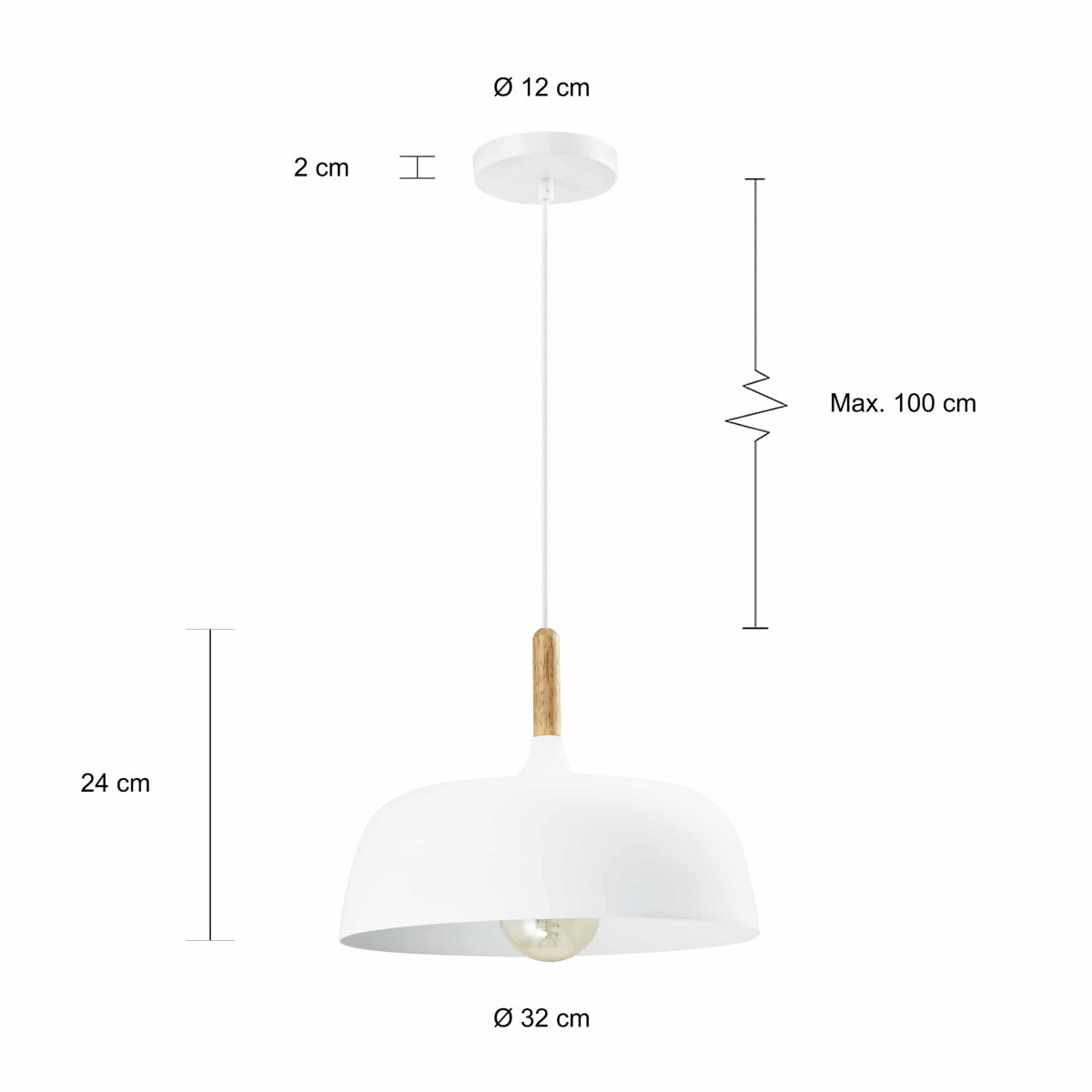 Specificaties van de Scandinavische hanglamp met afgeronde hoeken in het wit