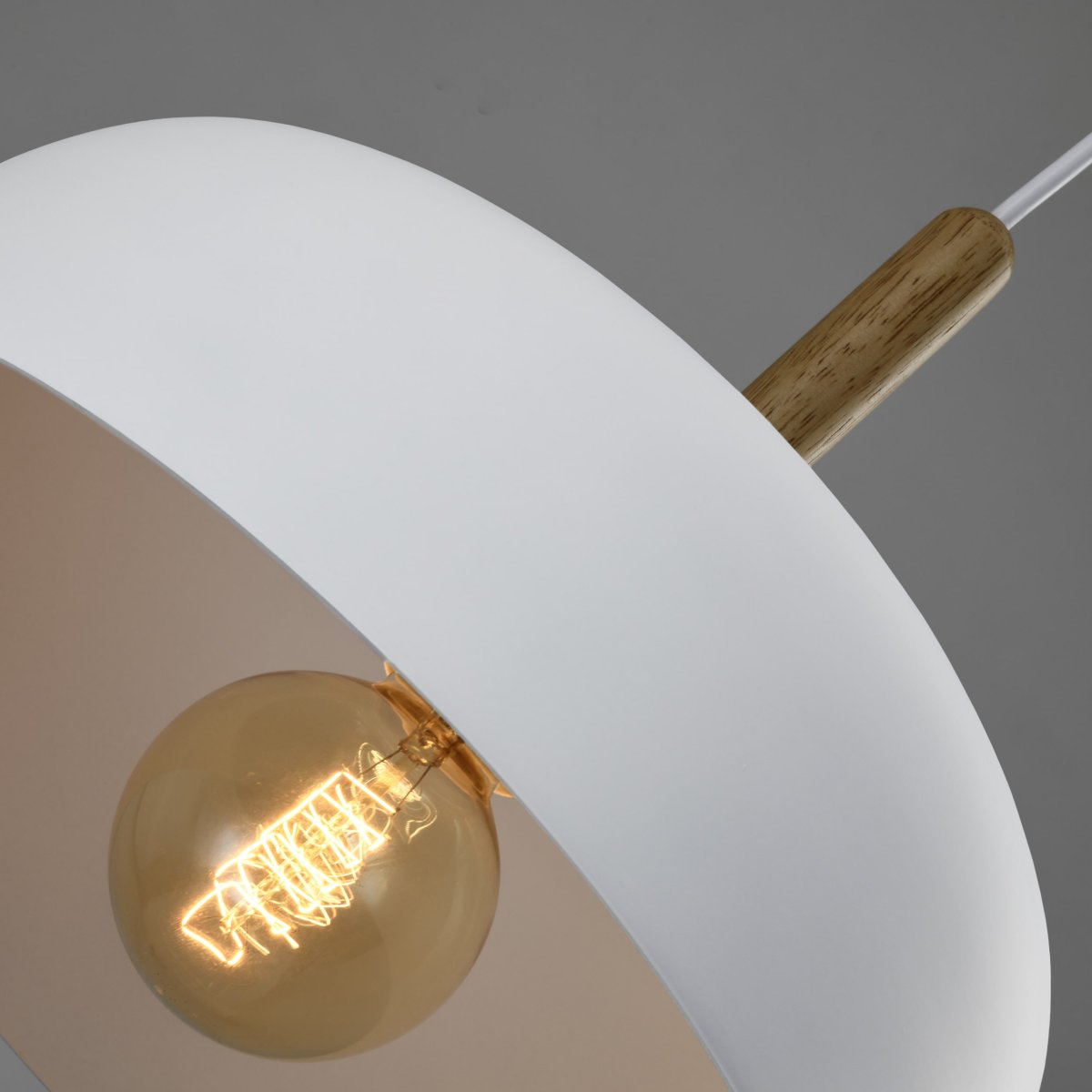De Scandinavische hanglamp met afgeronde hoeken in het wit is te dimmen naar wens