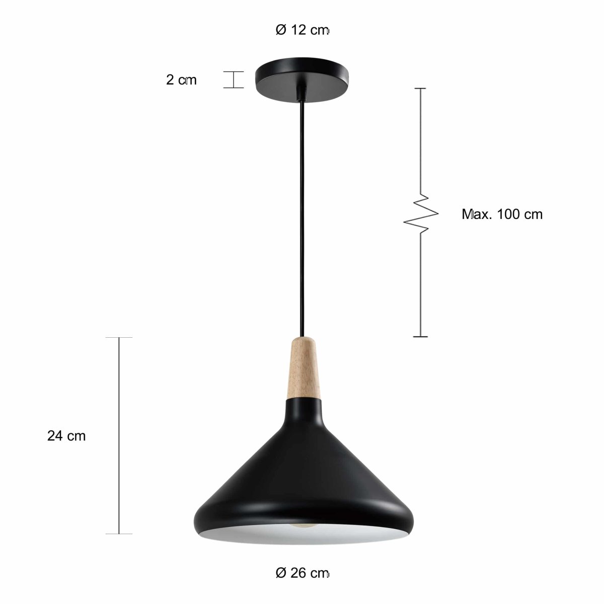 Ben jij ook zo dol op de populaire Scandinavische stijl? De praktische, maar toch stijlvolle meubels, de rust die het minimalisme met zich meebrengt en de elegante uitstraling van de strakke lijnen. Met deze zwarte Scandinavische hanglamp haal je een stukje van dit Scandinavische design in huis. De zwarte lamp heeft een strak, maar stijlvol uiterlijk en laat zich gemakkelijk combineren. De houten kop geeft het geheel een speels en natuurlijk tintje, waardoor de lamp niet alleen in een Scandinavisch interieur past. Ook in een modern of zelfs landelijk ingericht huis komt deze sfeerlamp tot zijn recht. Waar hang jij de lamp op?