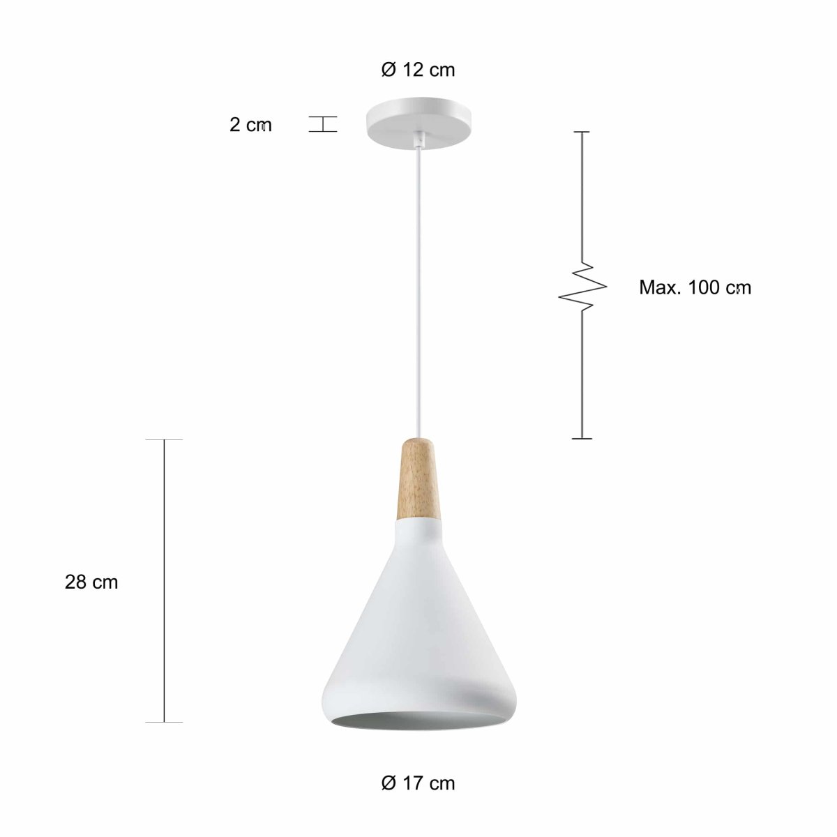 Als je een dimbare lichtbron in de lamp plaatst, creëer je in een handomdraai de perfecte sfeer voor bij je thuis. Heb je nog geen dimbare lamp in huis, bekijk dan ons assortiment lichtbronnen. Door de Scandinavische kegel hanglamp in het wit te combineren met een bulb, heb je meteen alles in huis om de lamp op te hangen.