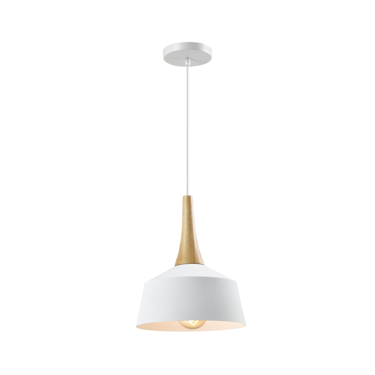 - Witte plafondlamp met houten kop