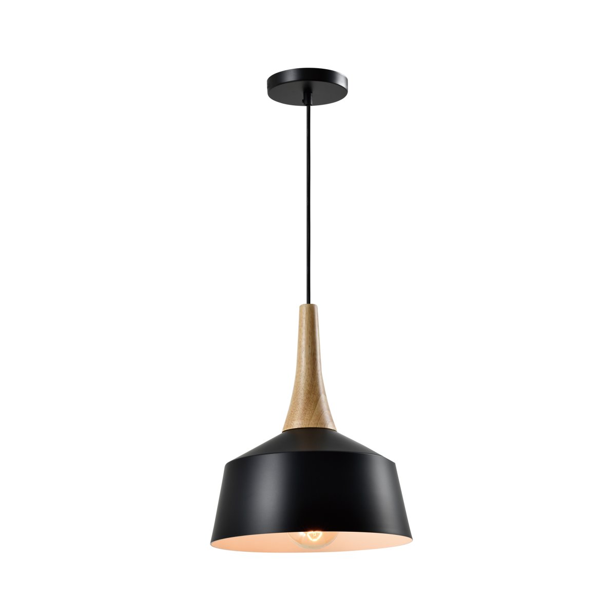 - zwarte plafondlamp met houten kop