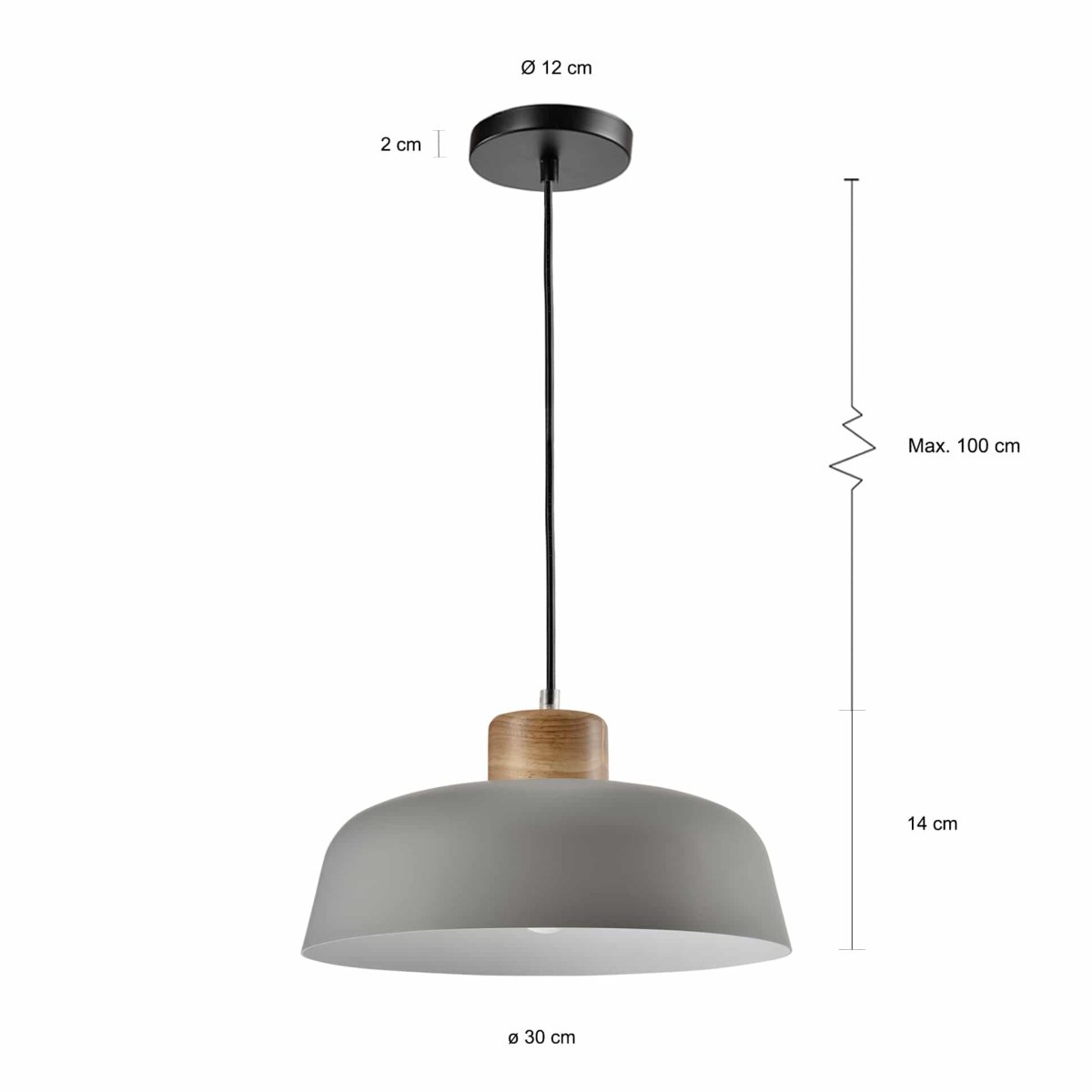 Eindeloos combineren met deze ronde hanglamp in het grijs van metaal en hout