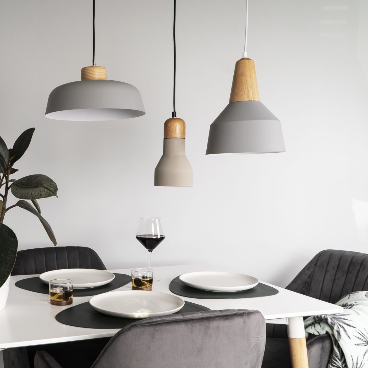 Je kunt kiezen voor een enkele lamp voor een kleine kamer, of je hangt meerdere exemplaren in een groepje bij elkaar. Met deze lamp kun je makkelijk spelen met kleuren. Combineer zwarte en grijze lampenkappen en je krijgt een speels geheel. Het hout vormt een mooi contrast met het strakke zwart of grijs van de lampenkap. Dit decoratieve item van Scandinavisch design is een echte sfeerlamp. Voor meer hanglampen ,bekijk onze categorie: Hanglampen.