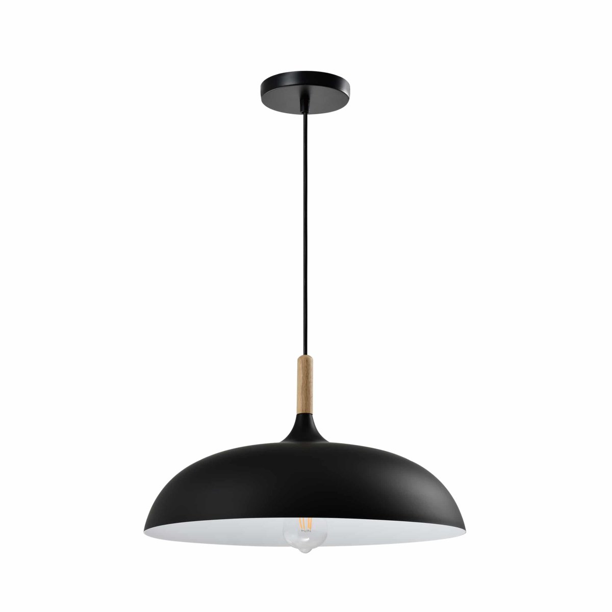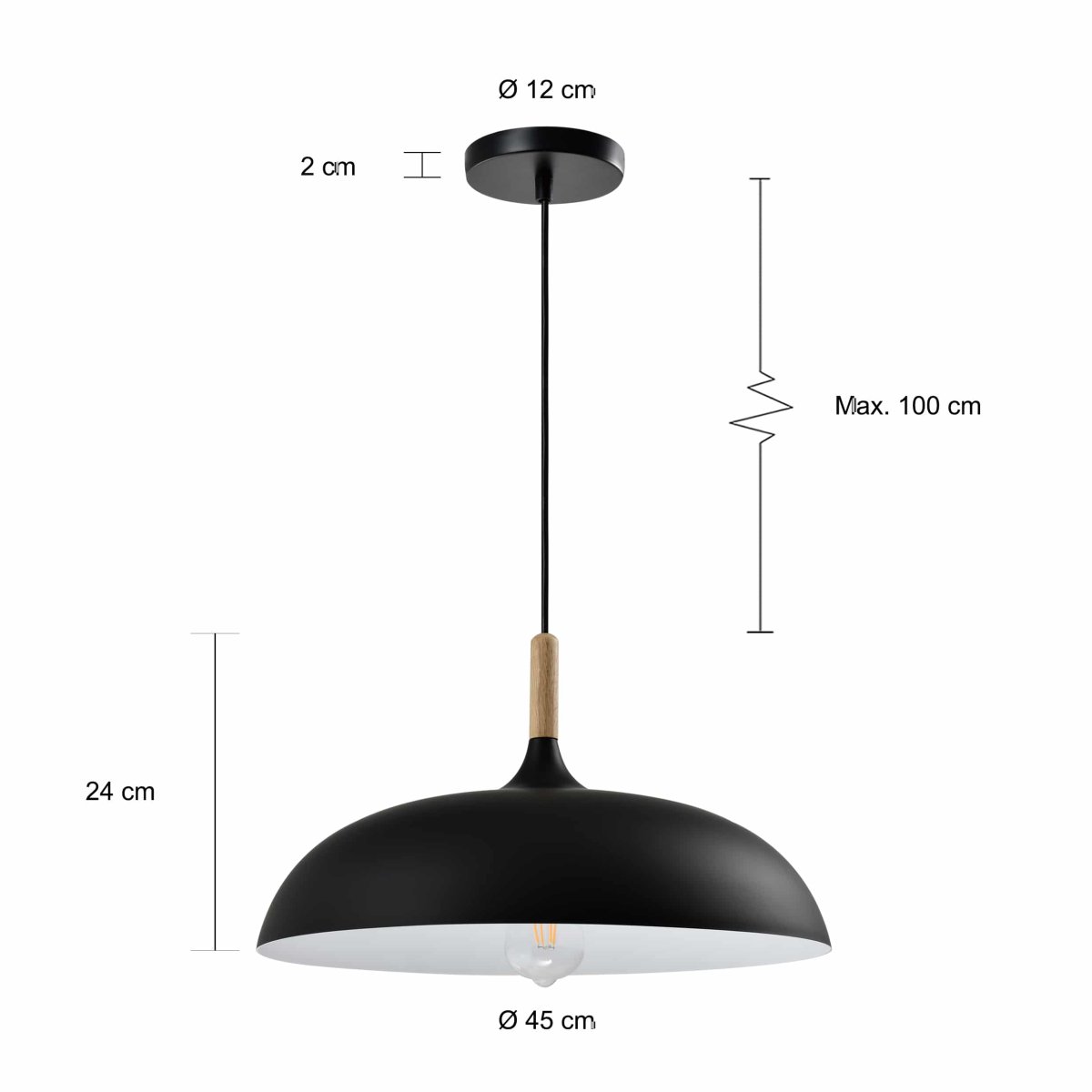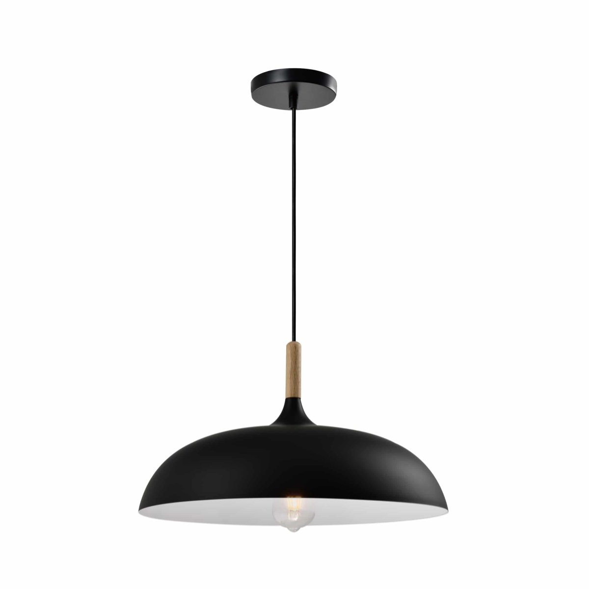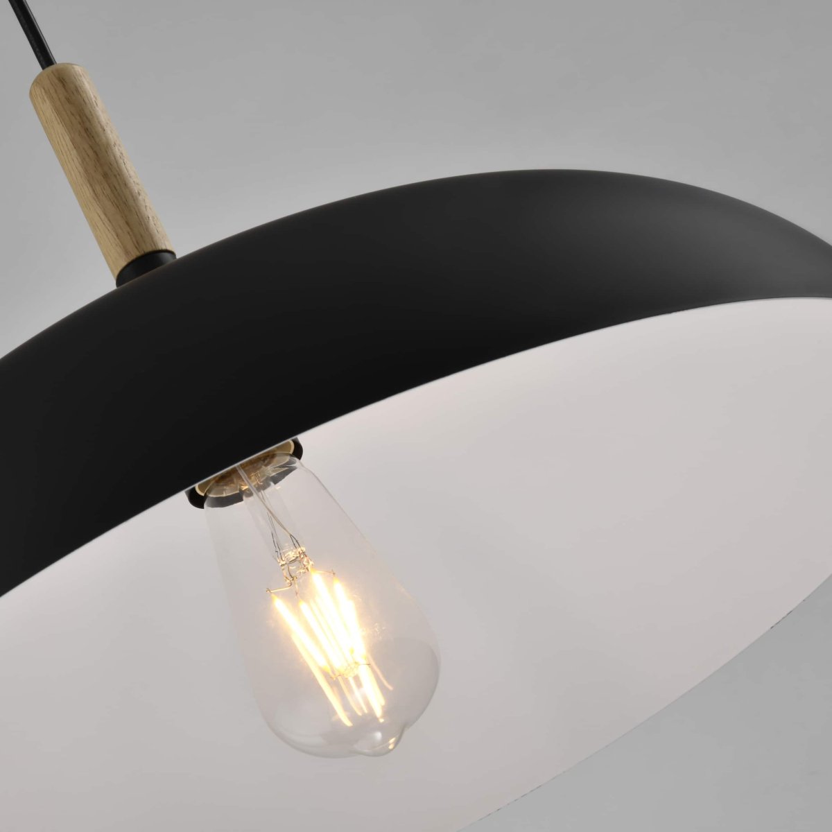 Je kunt kiezen voor een enkele lamp voor een kleine kamer, of je hangt meerdere exemplaren in een groepje bij elkaar. Met deze lamp kun je makkelijk spelen met kleuren. Combineer zwarte en grijze lampenkappen en je krijgt een speels geheel. Het hout vormt een mooi contrast met het strakke zwart van de lampenkap. Dit decoratieve item van Scandinavisch design is een echte sfeerlamp.