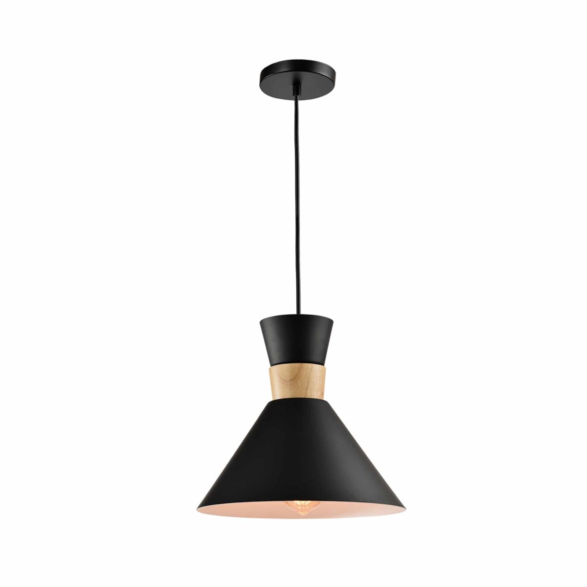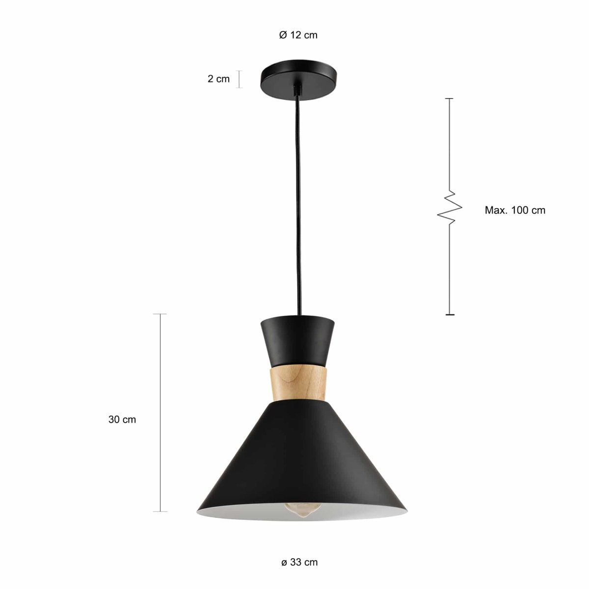 De bijzondere vormgeving van deze Scandinavische hanglamp brengt een elegante toets in je woning. Nochtans heeft deze elegante plafondlamp ook een stoer kantje. Het zwarte metaal past bijvoorbeeld uitstekend in een industrieel pand. De unieke vormgeving heeft ook wel een retro touch zodat deze lamp ook in jouw vintage woning past. De lamp is van aluminium en hout gemaakt en is daardoor zeer sterk. Dit is een lamp die je voor jaren hebt. Met dit object kies jij voor duurzaamheid.