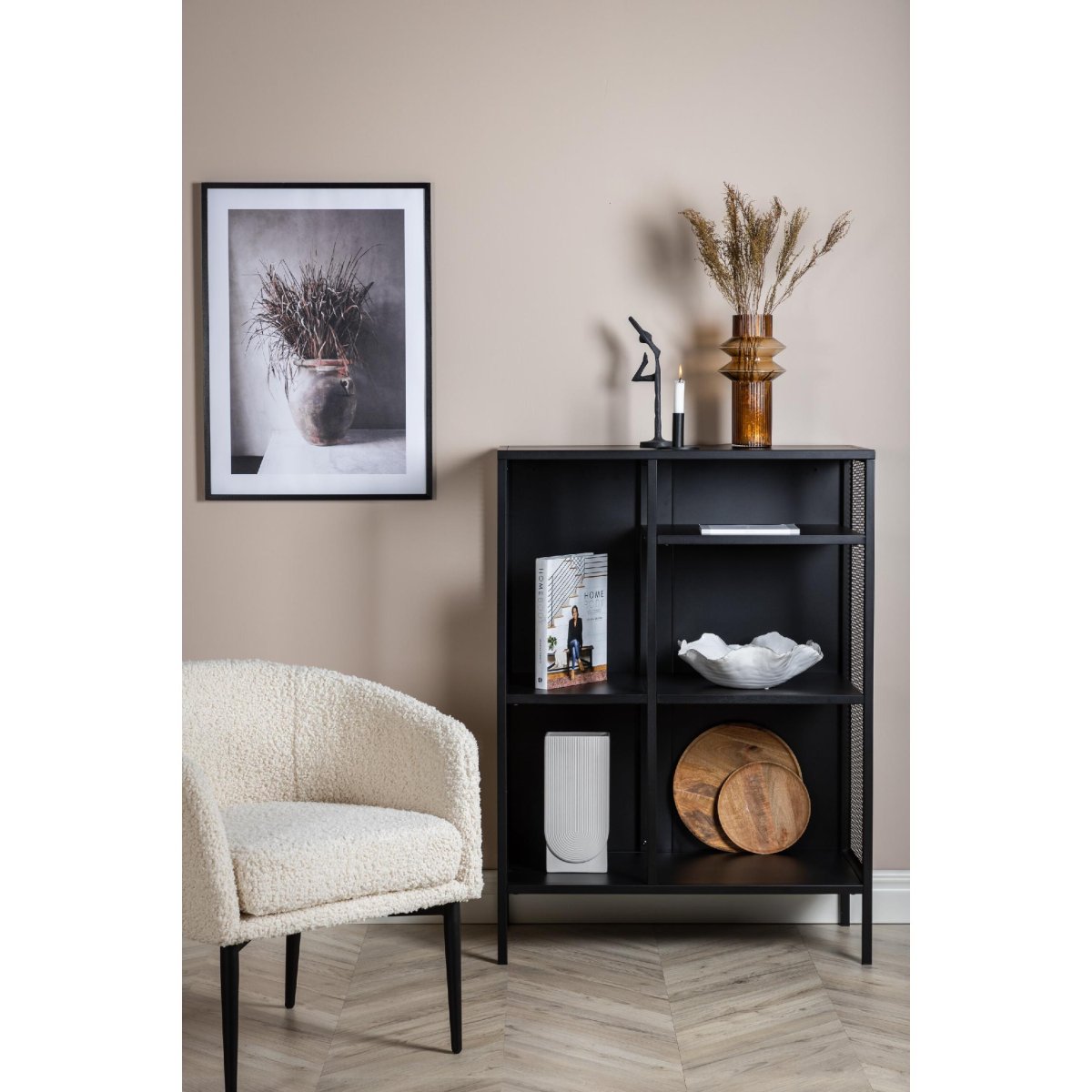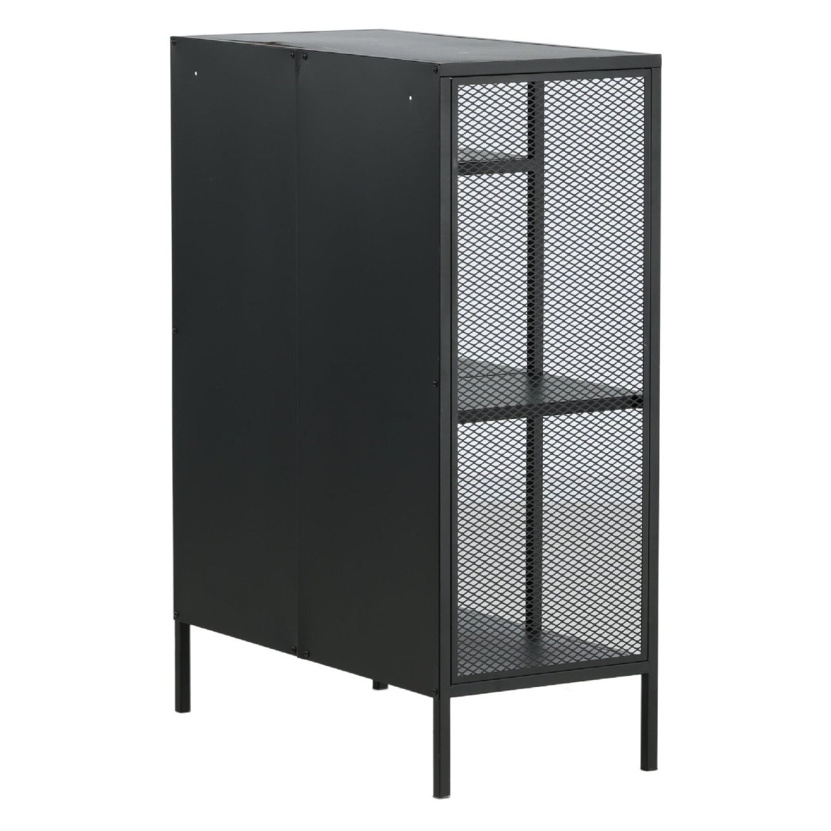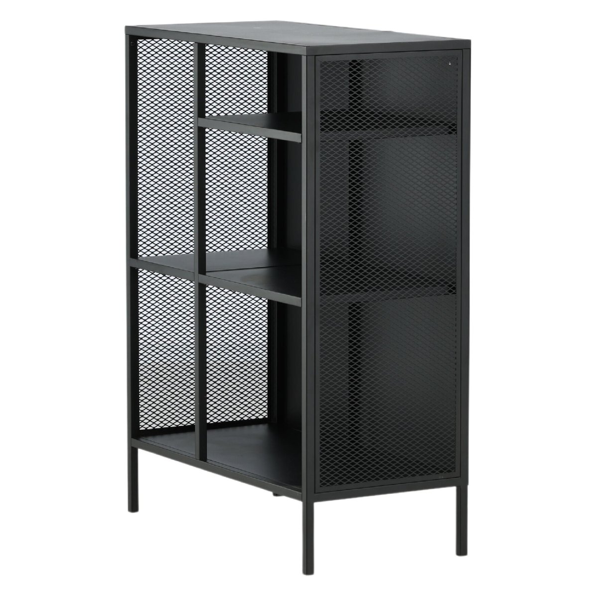 Ontdek de veelzijdigheid van de Henrik Wandkast Mesh – Zwart van QUVIO, een stijlvolle en functionele opbergoplossing voor elk interieur. Deze robuuste kast is vervaardigd uit gepoedercoat zwart staal en biedt een industriële uitstraling die perfect past in moderne woonruimtes. Met drie opbergvlakken op verschillende hoogtes biedt deze kast voldoende ruimte voor boeken, decoraties en meer. De zijpanelen van gaas geven een extra dimensie aan het ontwerp, terwijl de vier stevige stalen poten zorgen voor stabiliteit. Met afmetingen van 80 cm breed, 40 cm diep en 110 cm hoog, past deze kast moeiteloos in elke kamer.