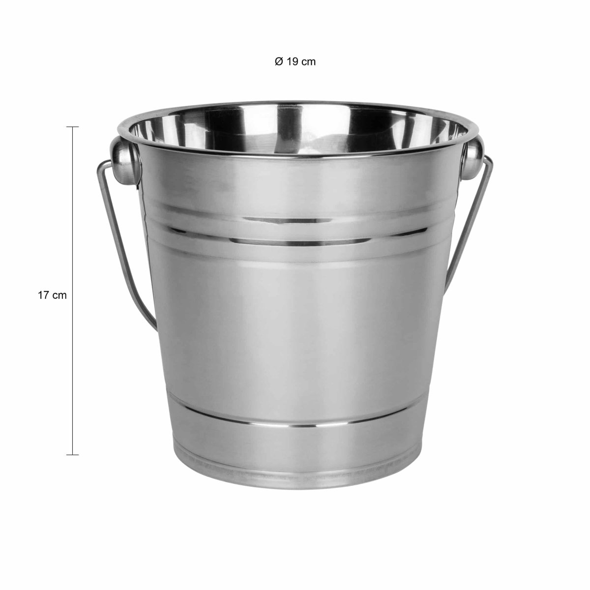 Deze Wijnkoeler RVS is voorzien van een handig draagbaar handvat. Hierdoor verplaats je de emmer makkelijk in de ruimte of je draagt de emmer makkelijk naar de keuken, als je deze weer bij gaat vullen met drankjes of ijs. De koeler heeft een afmeting van 19 x 19 x 17 centimeter.