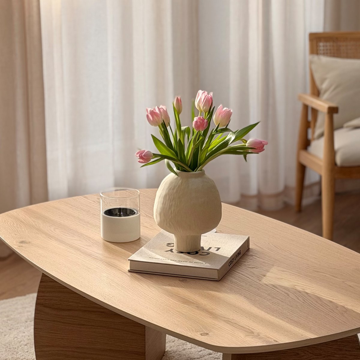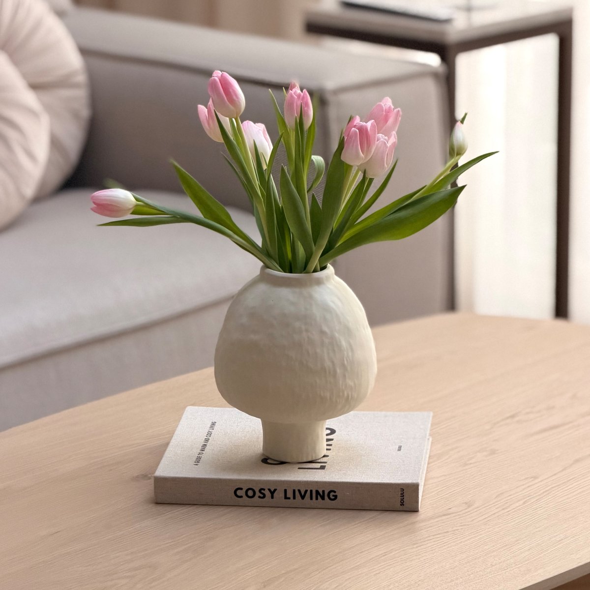 De zachte, ronde vormen en de gebroken witte kleur geven de keramische vaas een rustige en natuurlijke uitstraling. Dit maakt hem perfect voor een Japandi interieur, waar minimalisme en warmte samenkomen. Combineer de vaas wit met andere keramische accessoires of houten decoratie voor een harmonieus geheel, of laat hem op zichzelf spreken als subtiel accentstuk.