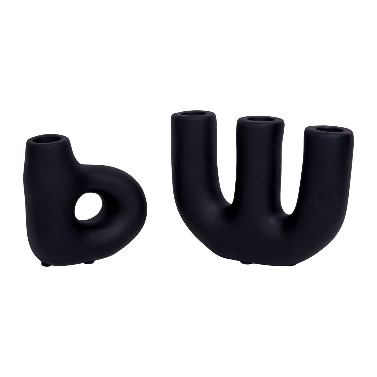 QUVIO Kaarsenhouder zwart – Organische vorm – Keramiek – Zwart