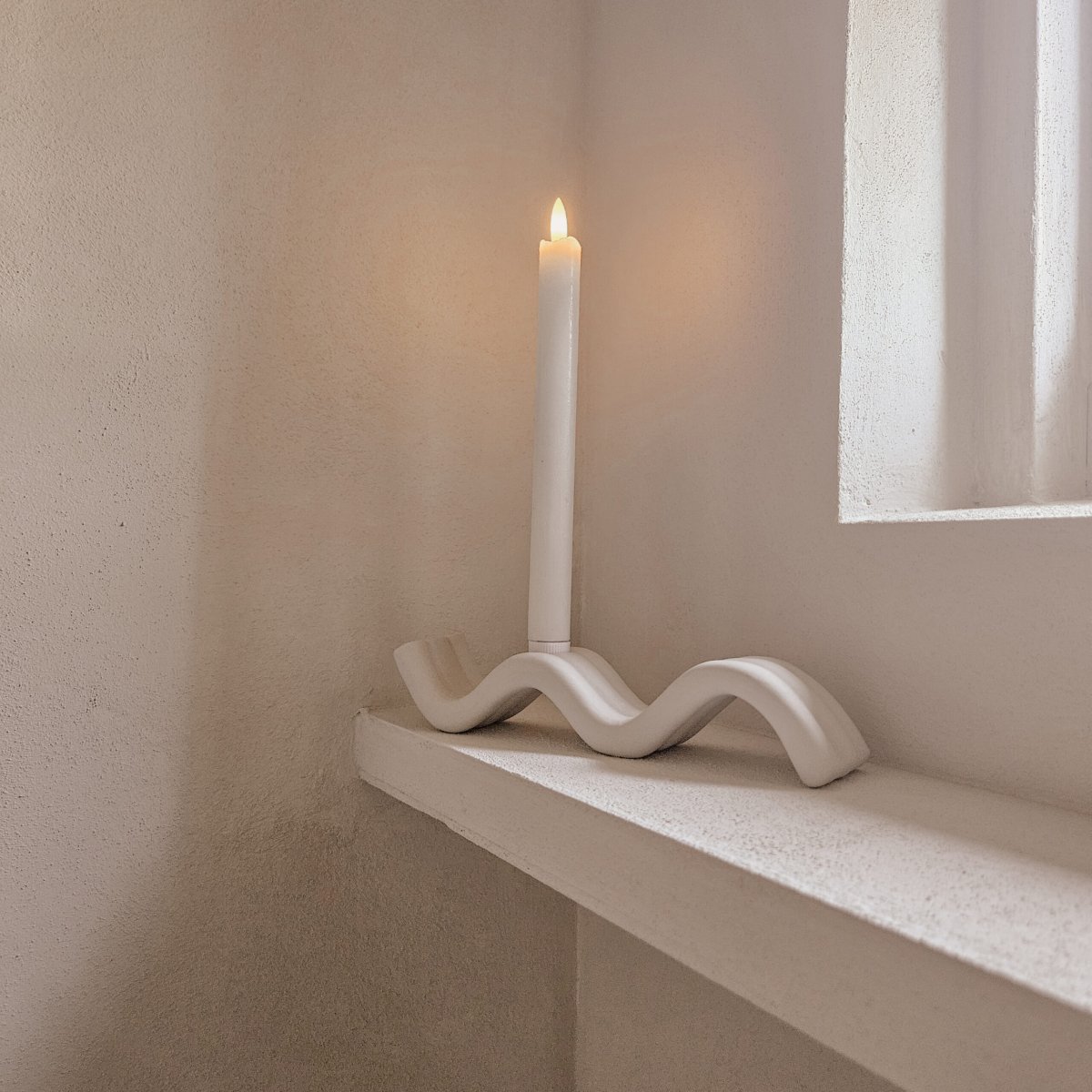 Ontdek de stijlvolle golvende kandelaar, perfect voor Japandi interieurs.