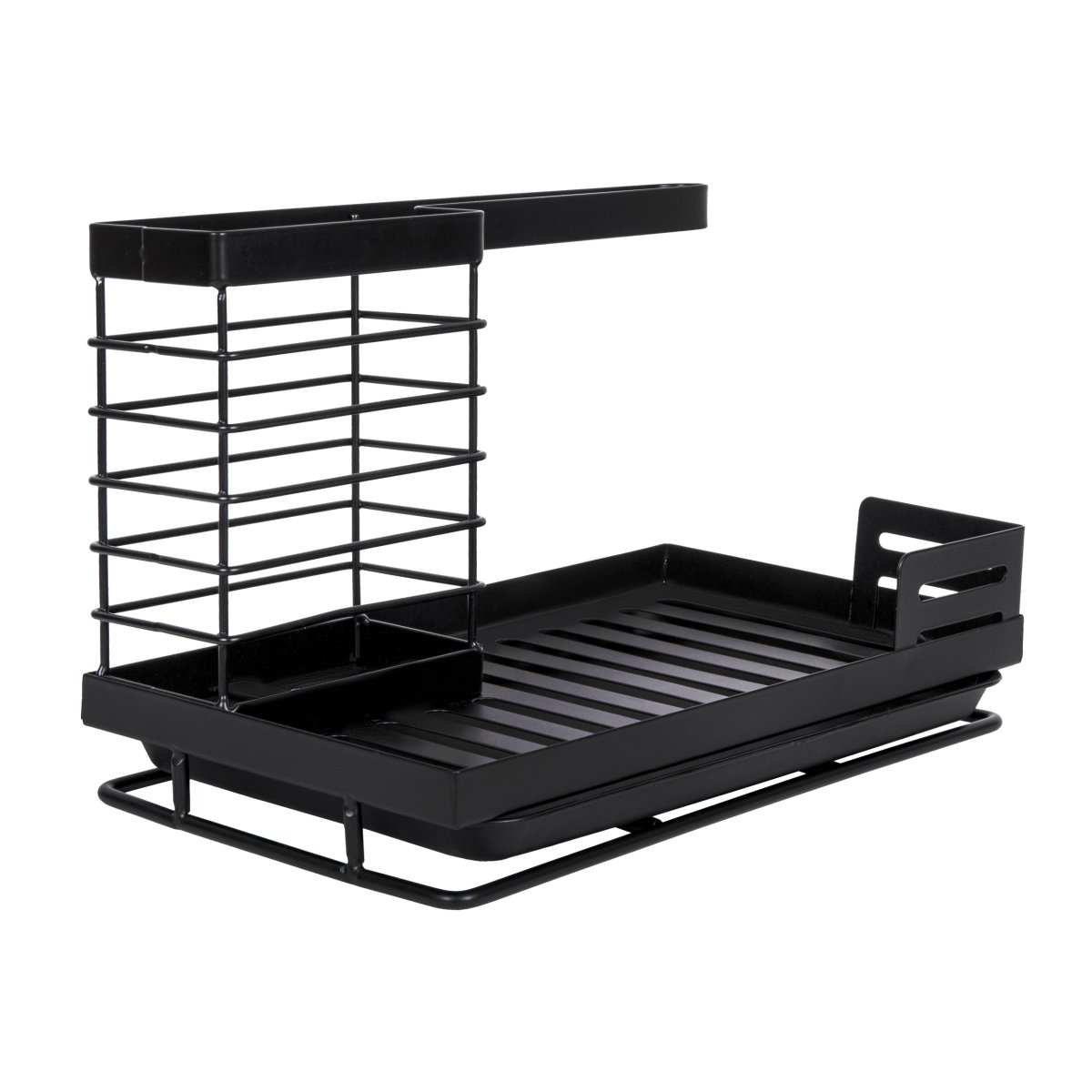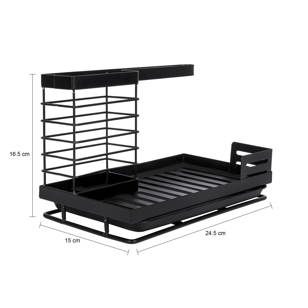 Deze multifunctionele organizer is ontworpen om je keukenbenodigdheden georganiseerd en binnen handbereik te houden. Deze keukenorganizer is gemaakt van hoogwaardig metaal met een elegante zwarte afwerking, waardoor de aanrechtorganizer naadloos in elk keukendesign past. Ideaal voor het opbergen van sponzen, afwasborstels, en meer.