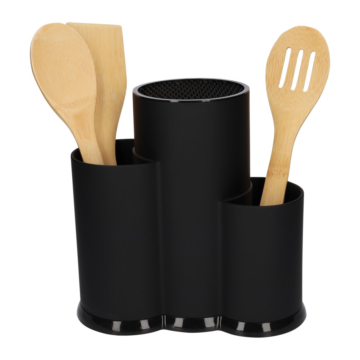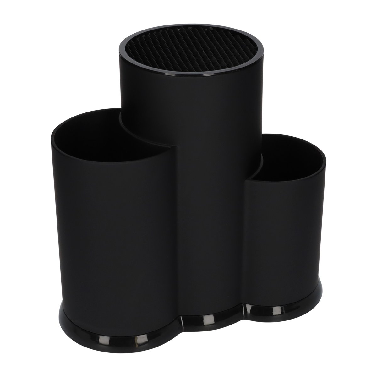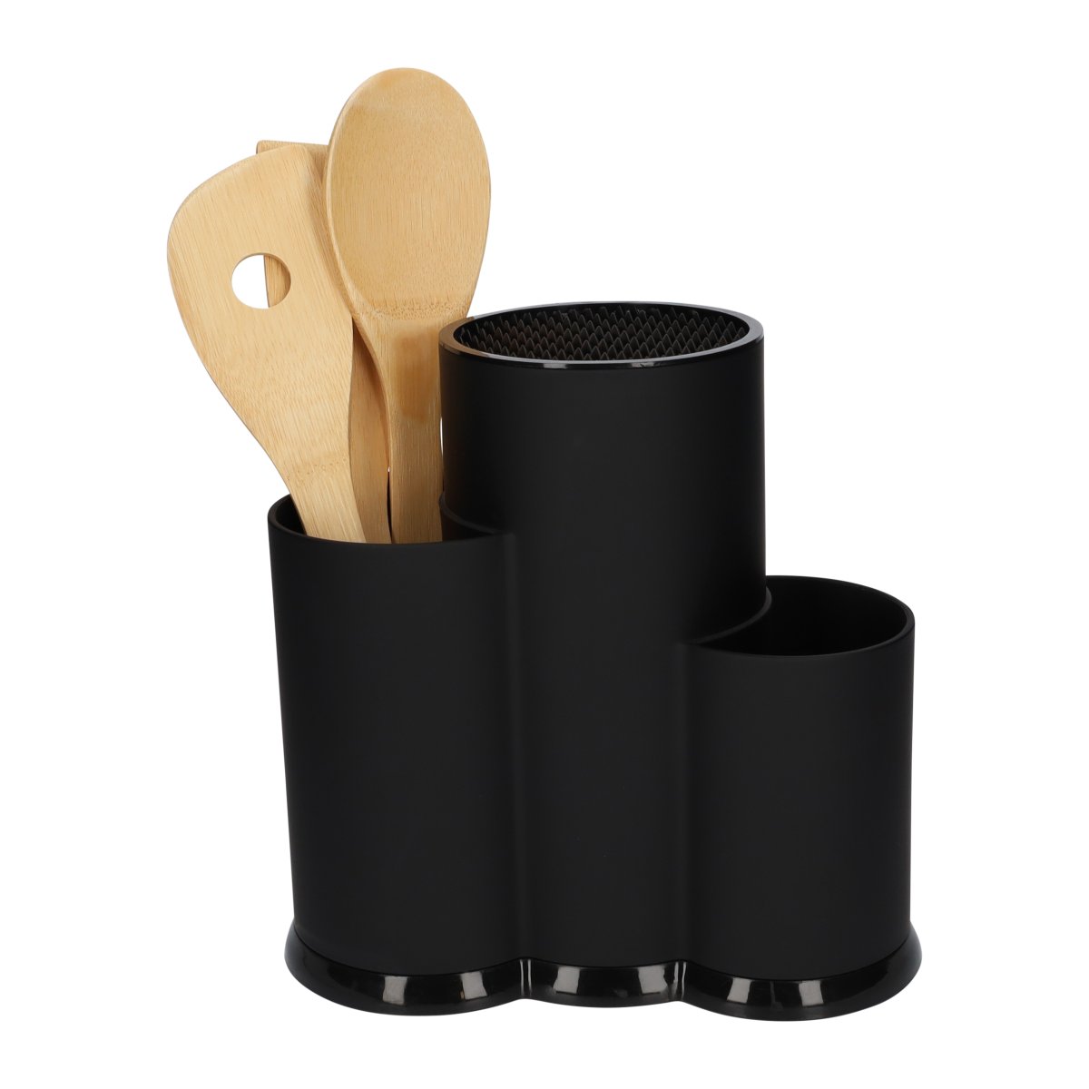 Deze keukengerei organizer bestaat uit drie bakjes. Twee bakjes zijn geschikt voor het bewaren van bestek en spatels. Het middelste bakje is een speciale messenhouder. Hierin plaats je messen in diverse formaten. Of je nou een groot broodmes wilt opruimen of dat je een schilmesje in het blok wilt plaatsen, het kan allebei probleemloos. Dat maakt deze multifunctioneel keukengerei houder in het zwart van kunststof zo enorm handig. Welk keukengerei je ook wilt opruimen, deze multifunctionele houder maakt het mogelijk.