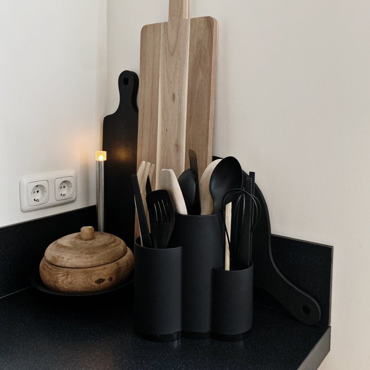 Je keuken organiseren met een multifunctioneel keukengerei houder in het zwart