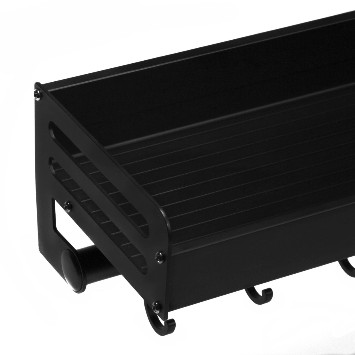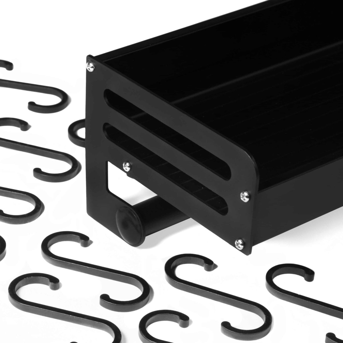 QUVIO Keukenrek met schap en 10 ophanghaken staal – Zwart