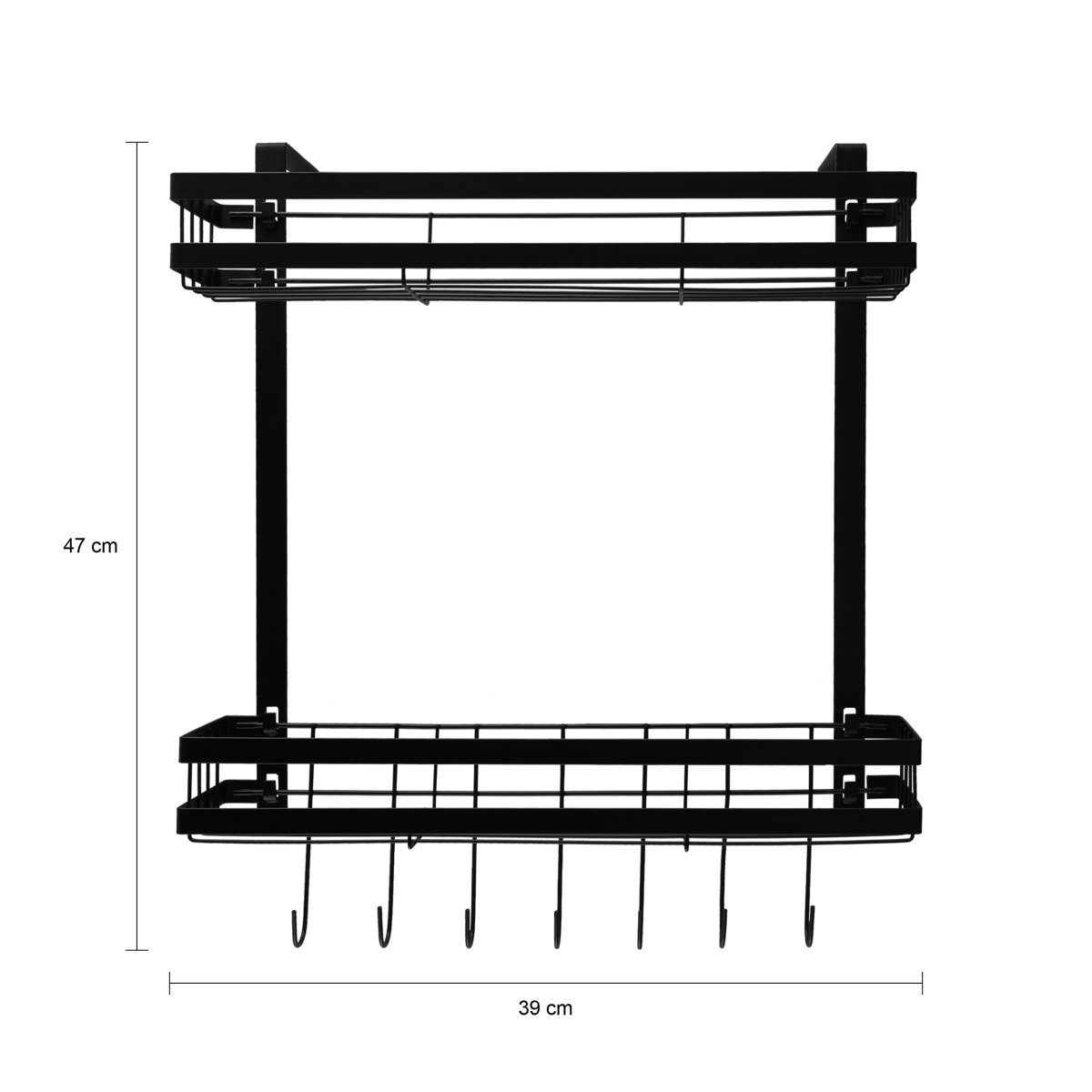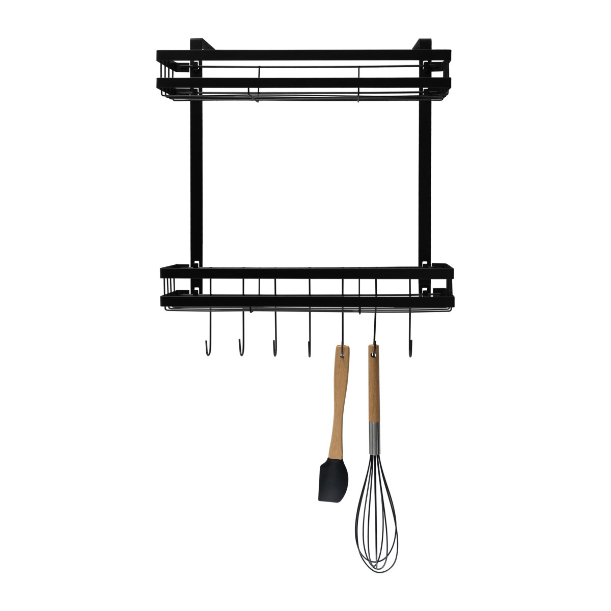 Hang handige items op aan dit ophangbare kruidenrek met 7 haken van metaal in het zwart