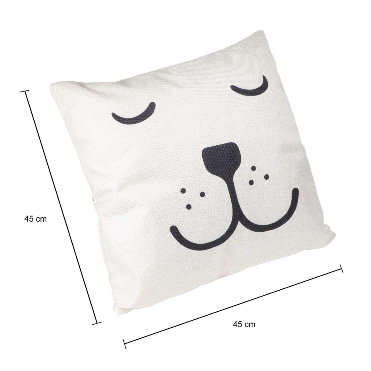 De QUVIO kussenhoes met slapende beer is met zijn neutrale kleuren de perfecte accessoire voor elk hoekje. Op een bank is hij makkelijk te combineren met andere kussens, maar ook in een nisje of op de kinderkamer zorgt dit product voor een knusse sfeer. De vierkante kussenhoes vul je op met een kussen van 45 bij 45 centimeter, via de blinde rits aan de onderzijde. Hierdoor is de rits mooi weggewerkt en valt deze niet zo snel op. Zo tover je in no-time een saaie bank of stoel om in een heerlijk plekje met deze kussenhoes met slapende beer.