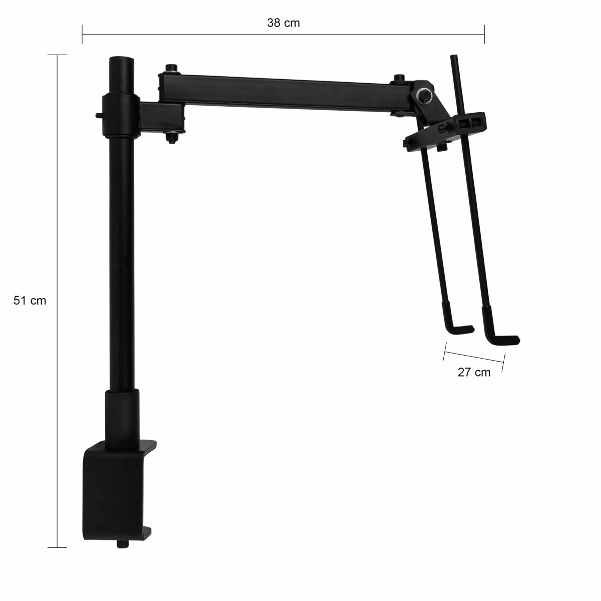 De stalen laptopbeugel met arm is makkelijk te bevestigen aan je bureaublad. Ook van de arm zelf kun je de hoogte en stand verstellen, waardoor je het scherm precies juist kunt positioneren.