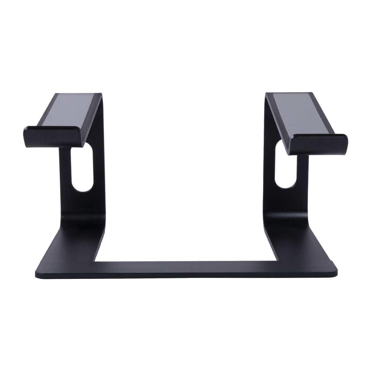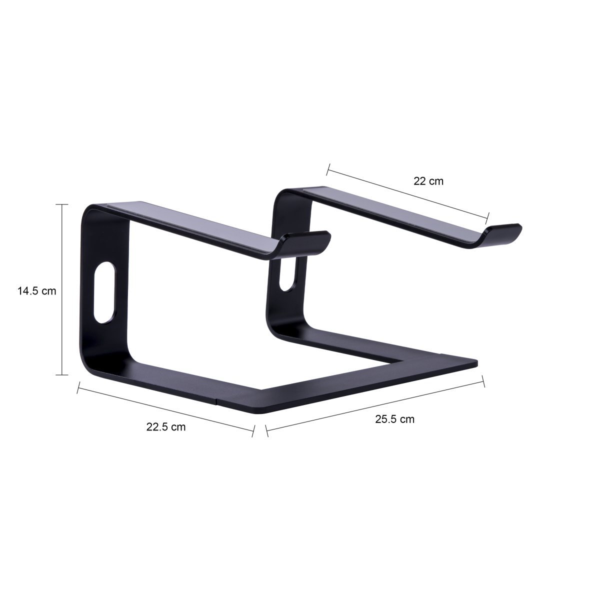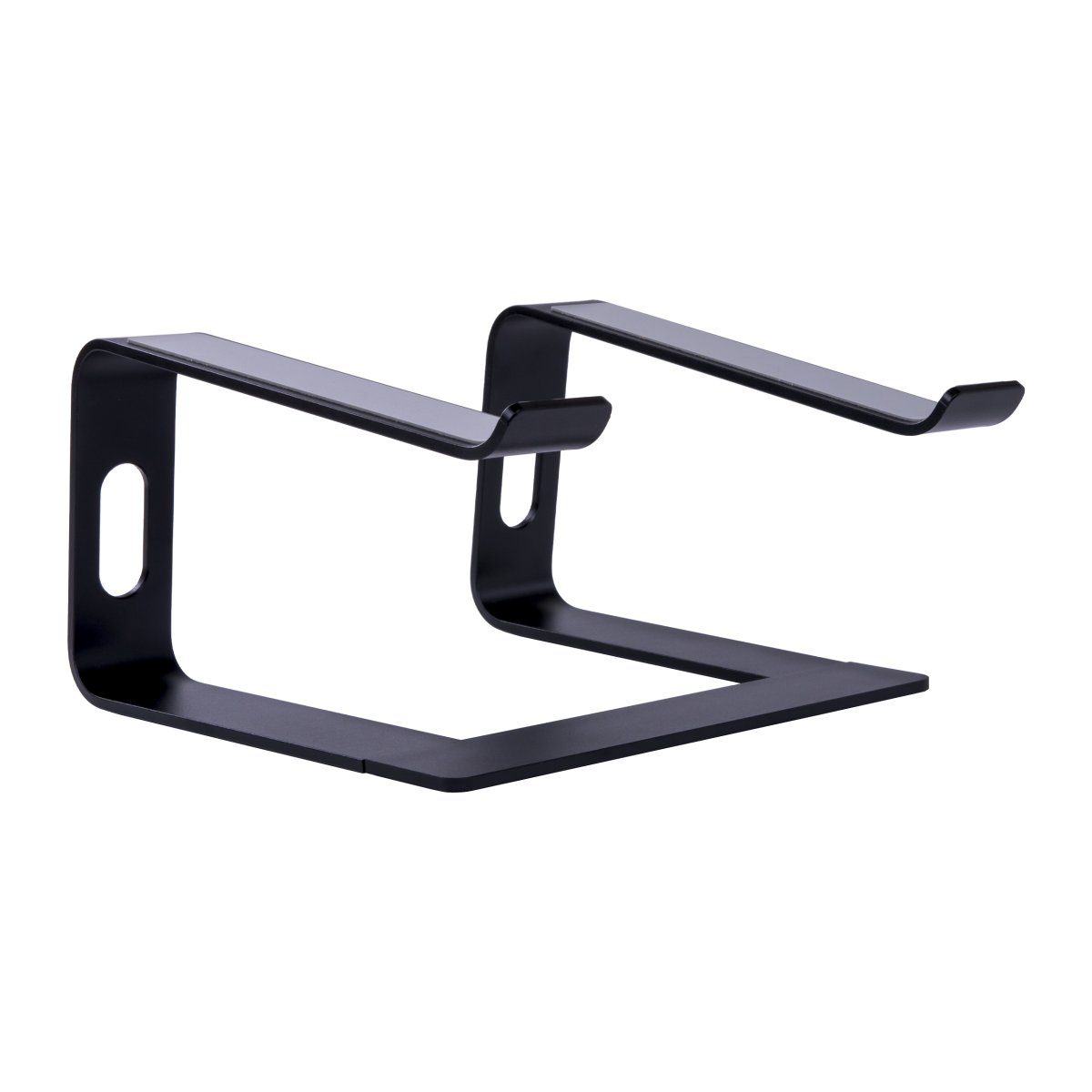Een functionele zwarte laptopstandaard voor jouw werkplek
