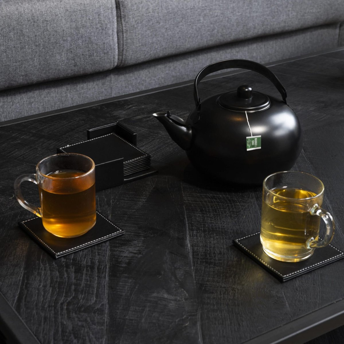 QUVIO 6 Leren Onderzetters vierkant met houder