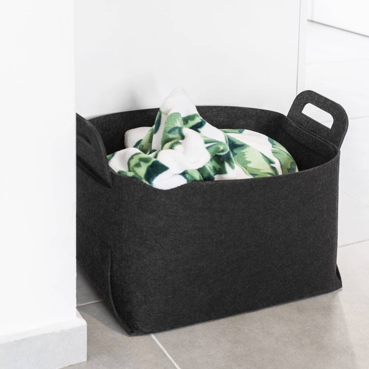 Je huis wil je graag opgeruimd en overzichtelijk houden. Organizers helpen je daarbij. Neem bijvoorbeeld deze QUVIO opbergmand van vilt. De opbergdoos is overal in huis te gebruiken. Door de mooie afmetingen past er veel in. Gebruik de vilten opbergmand bijvoorbeeld in de woonkamer voor tijdschriften, de slaapkamer voor beddengoed of zelfs op het toilet voor wc rollen. Zo zorg je overal in huis voor rust en ruimte.