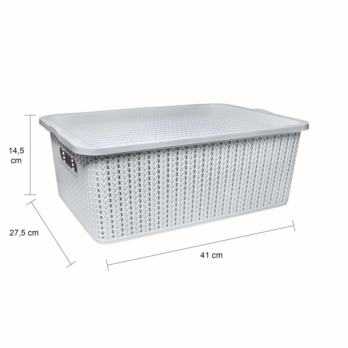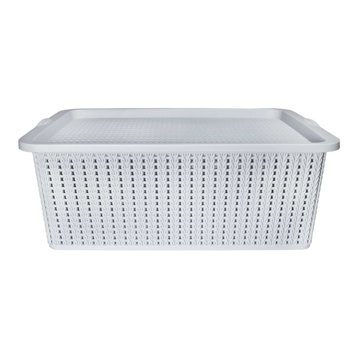 Het kan zomaar zo zijn dat je bepaalde spullen niet dagelijks nodig hebt. In dat geval is deze kunststof opbergmand met deksel de perfecte toevoeging om deze spullen netjes uit het zicht te houden. Je kunt ook nog eens makkelijk meerdere manden op elkaar stapelen voor optimaal gebruik van de ruimte. Dankzij de strategisch geplaatste openingen aan de zijkanten van de manden, til je ze ook nog eens makkelijk op. De opbergmand van kunststof met deksel heeft een afmeting van 27,5 x 41 x 14,5 cm en zijn dankzij het kunststof makkelijk schoon te maken. Ben je naast deze opbergmand met deksel ook opzoek naar meer accessoires voor in je huis? Bekijk dan ook eens de categorie woonaccessoires.