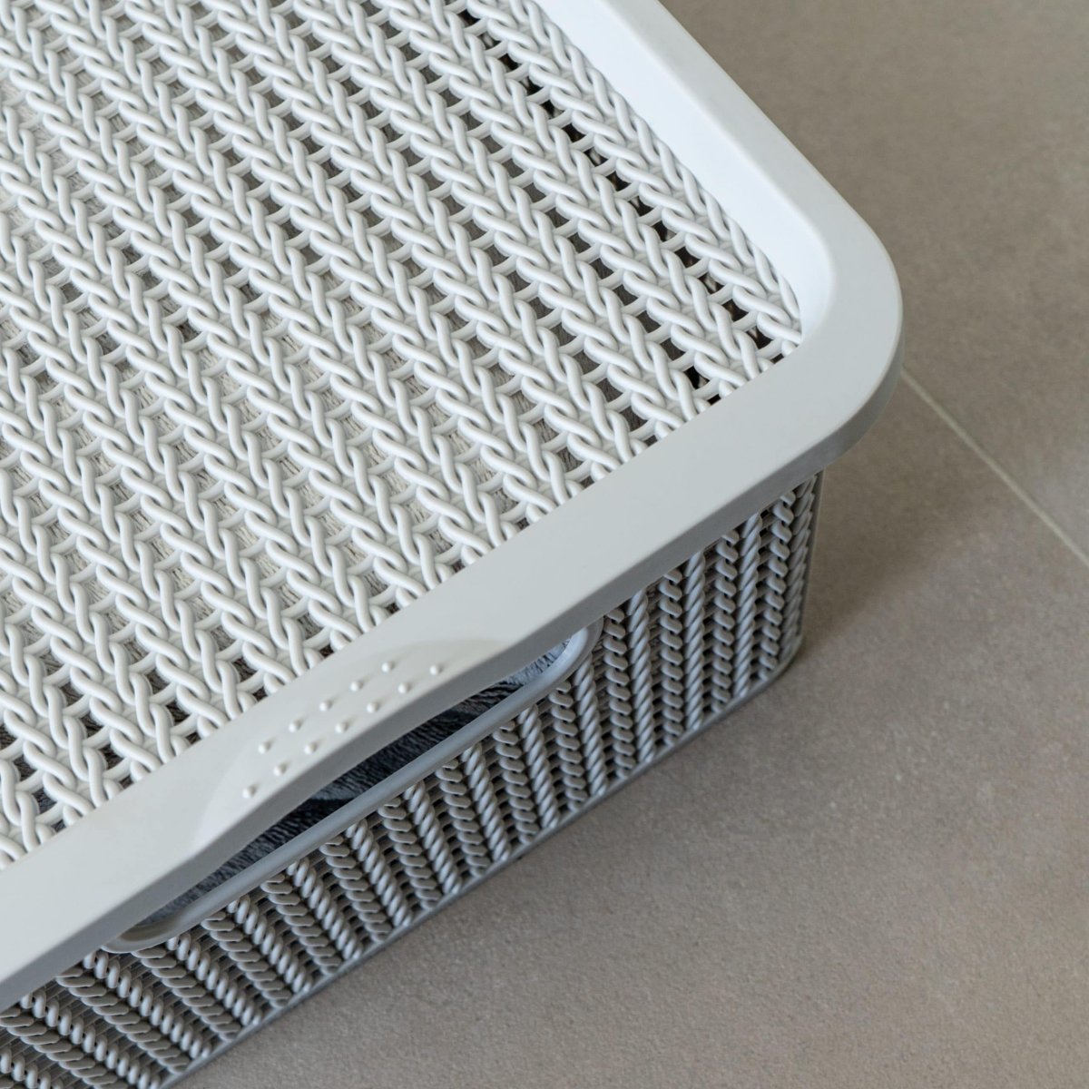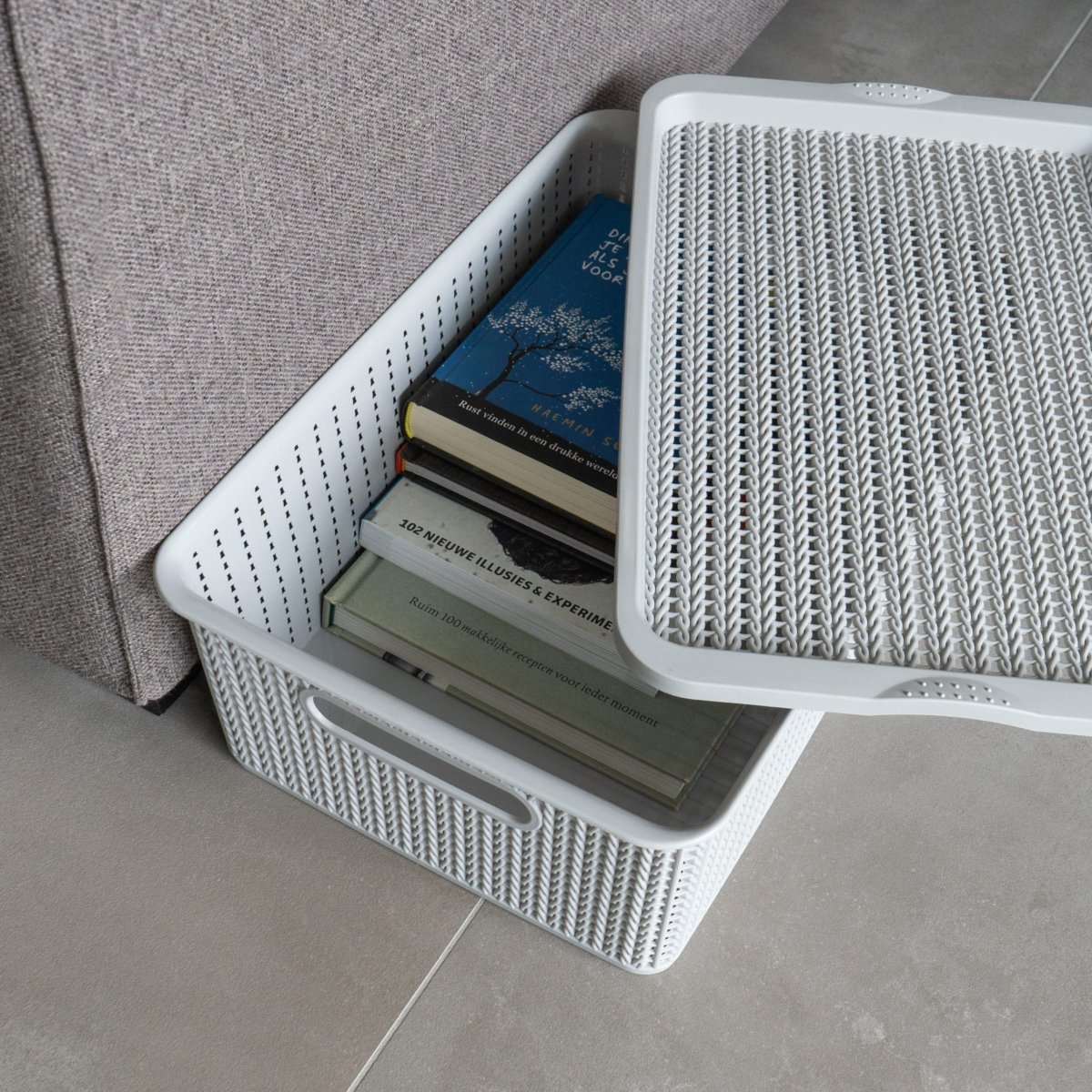 Zorg voor rust in het interieur met een opbergmand van kunststof met deksel
