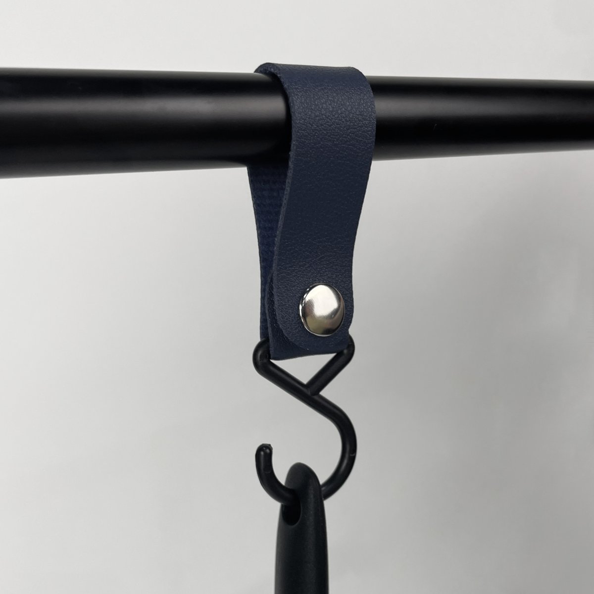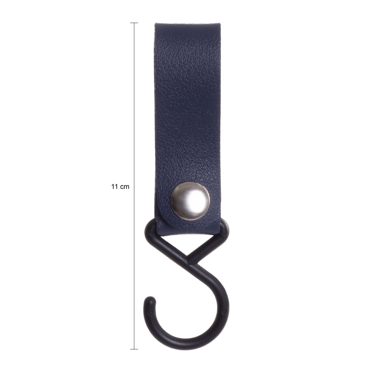 Aan het leren bandje van deze haak zit een drukknoop bevestigd. Met deze drukknoop is het mogelijk om het bandje te openen en te sluiten. Zo kun je het haakje eenvoudig ergens ophangen. Ook als je het op een later moment toch ergens anders wilt gebruiken, is dat geen enkel probleem. Open het bandje en hang het op een andere plek weer op. Wel zo praktisch.