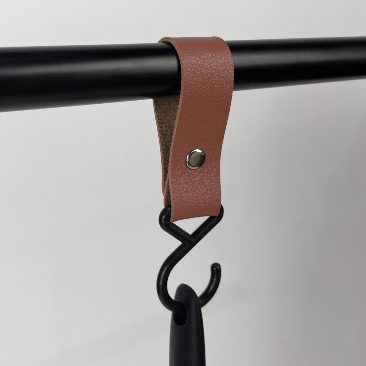 Een handig ophanghaakje met stijlvol leren bandje