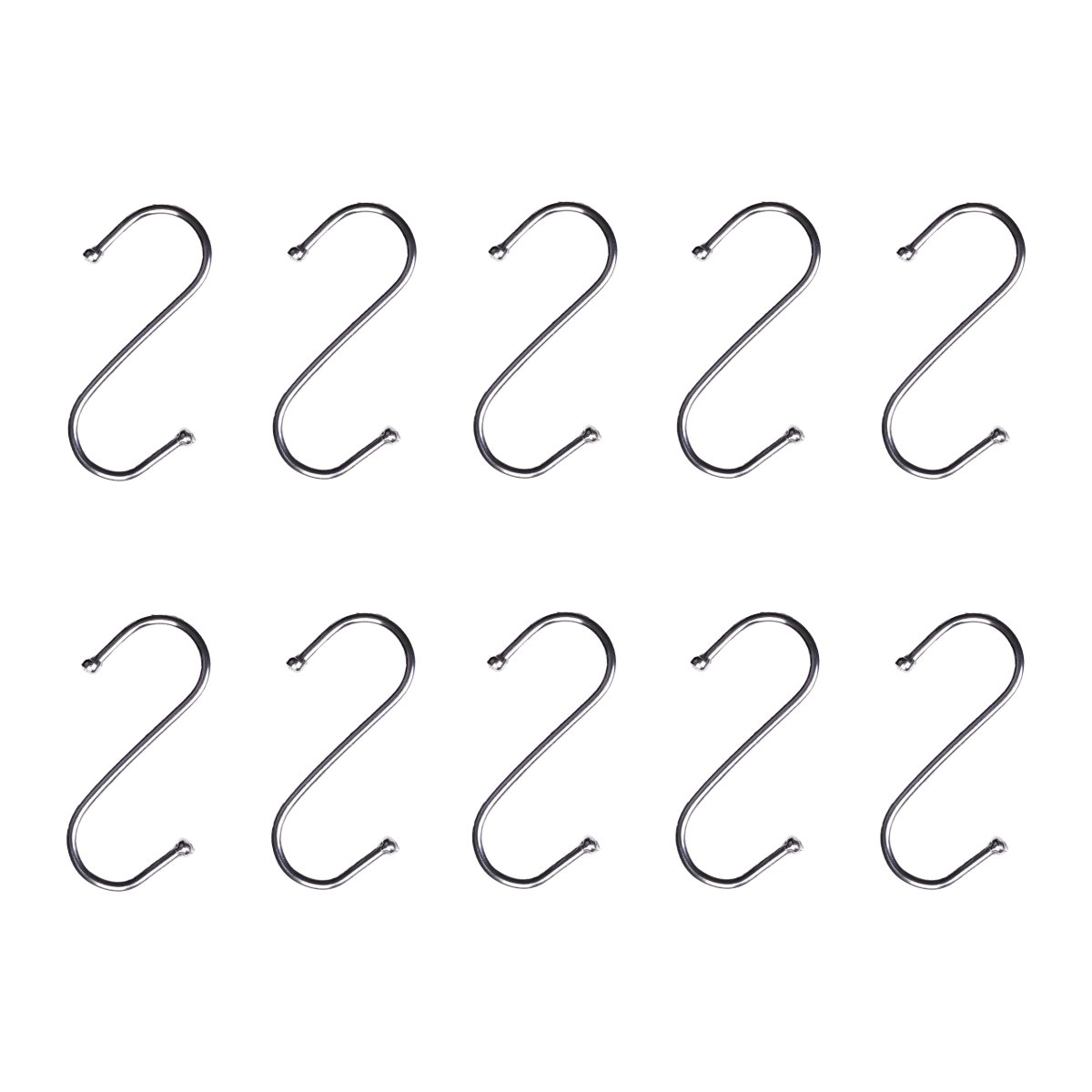 Rondslingerende handdoeken op de badkamervloer of een theedoek die altijd in de weg ligt op het aanrecht, met ophanghaakjes los je deze problemen eenvoudig op. Ook op andere plekken in huis komen haakjes altijd van pas. Daarom komen deze zilverkleurige ophanghaken in een set van 10 stuks. Zo heb je direct voldoende keukenhaakjes en handdoekhaakjes. Bovendien hebben deze haken een handige S-vorm. Zo kun je ze ook uitstekend gebruiken voor het ophangen van bijvoorbeeld keukenaccessoires. Het is maar net waar jij ze nodig hebt.