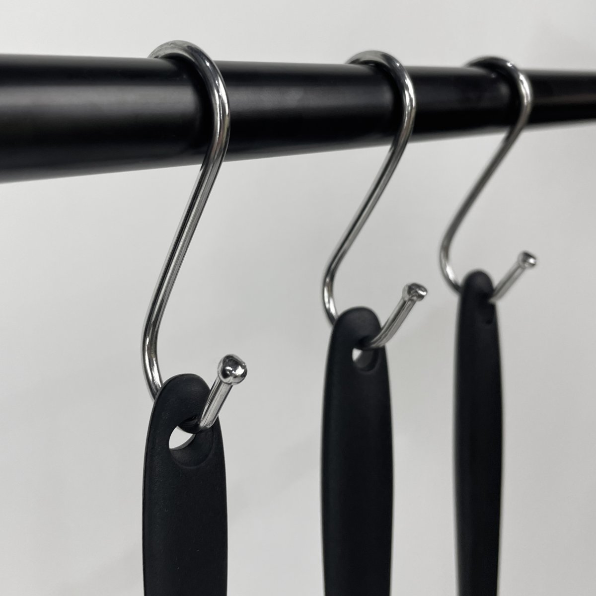 Door de S-vorm van deze haakjes kun je de haken op diverse plekken in huis integreren. Gebruik ze bijvoorbeeld in de badkamer als handdoekhaakjes, op de slaapkamer om een badjas aan op te hangen en in de keuken om spatels aan op te hangen. Je combineert de haken met een rail naar keuze om zo een praktisch opbergsysteem te creëren. Je bepaalt zelf hoeveel haken je gebruikt, waardoor je het systeem helemaal naar eigen wens kunt inrichten. En heb je op een later moment toch meer haakjes nodig? Dan hang je er gemakkelijk nog eentje bij.