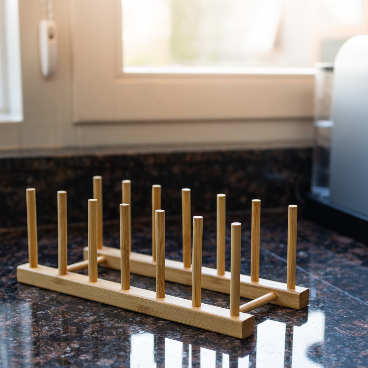 De QUVIO dekselhouder biedt genoeg plek voor zes deksels tegelijkertijd. Zo heb je altijd de juiste deksel bij de hand. Bovendien is een pannendekselhouder een ruimtebesparende manier van opruimen. Je zet de deksel rechtop in het rek, waardoor je er meer kwijt kunt op een kleiner oppervlakte. Dat maakt van de pannendekselhouder van bamboe voor 6 deksels een aanwinst in elke keuken.