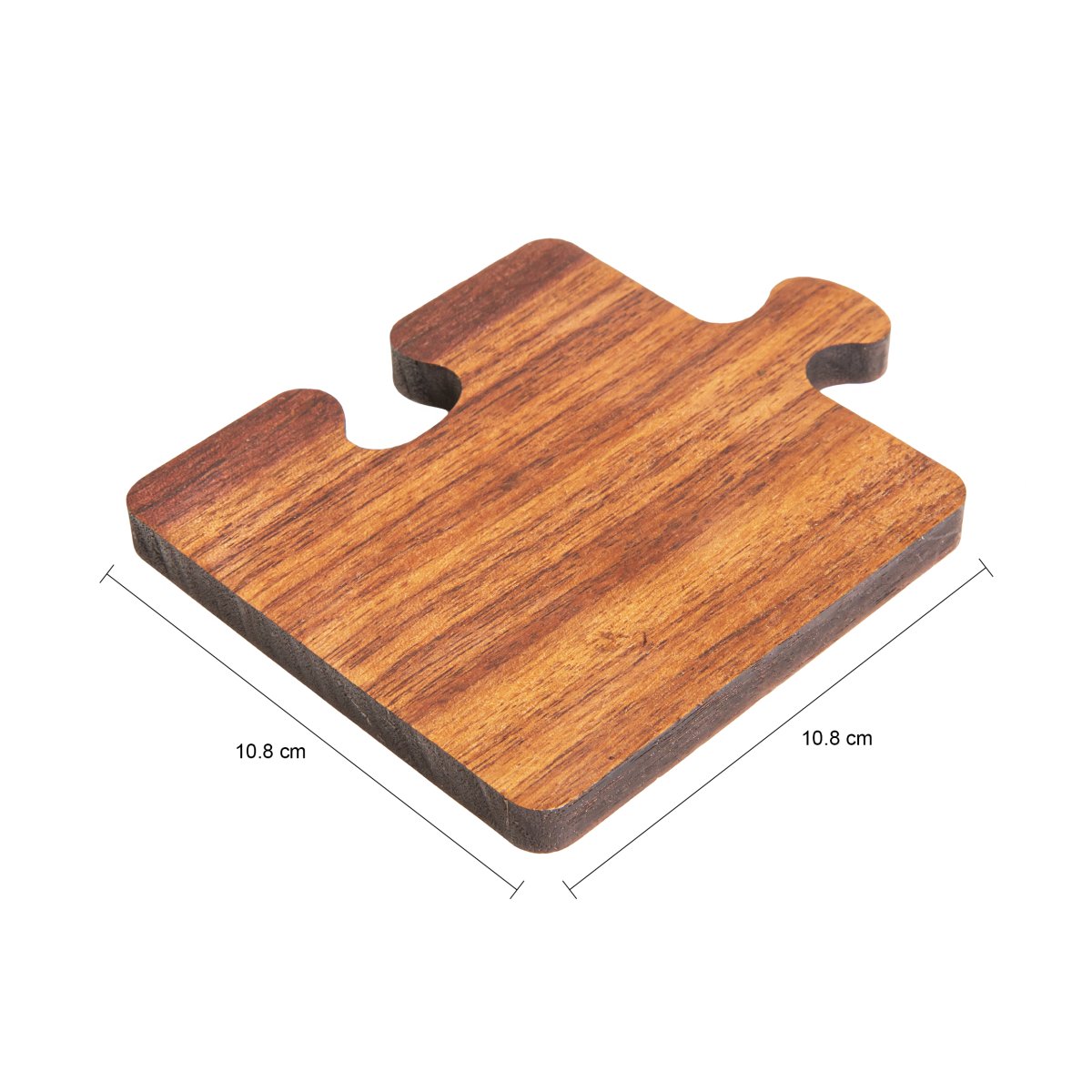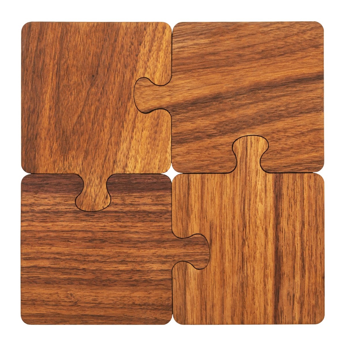 De QUVIO onderzetter set biedt een unieke combinatie van veelzijdigheid en design. Bestaande uit vier puzzelstukken, functioneren deze niet alleen als stijlvolle onderzetters voor glazen, maar kunnen ze ook samengevoegd worden tot een stevige onderzetter voor pannen. Dit maakt ze ideaal voor zowel dagelijks gebruik als voor speciale gelegenheden. De natuurlijke bruine kleur van het hout voegt een warme, huiselijke touch toe aan elke tafelsetting.
