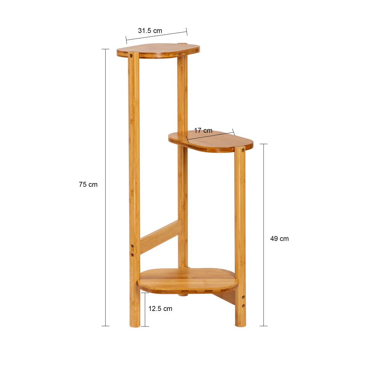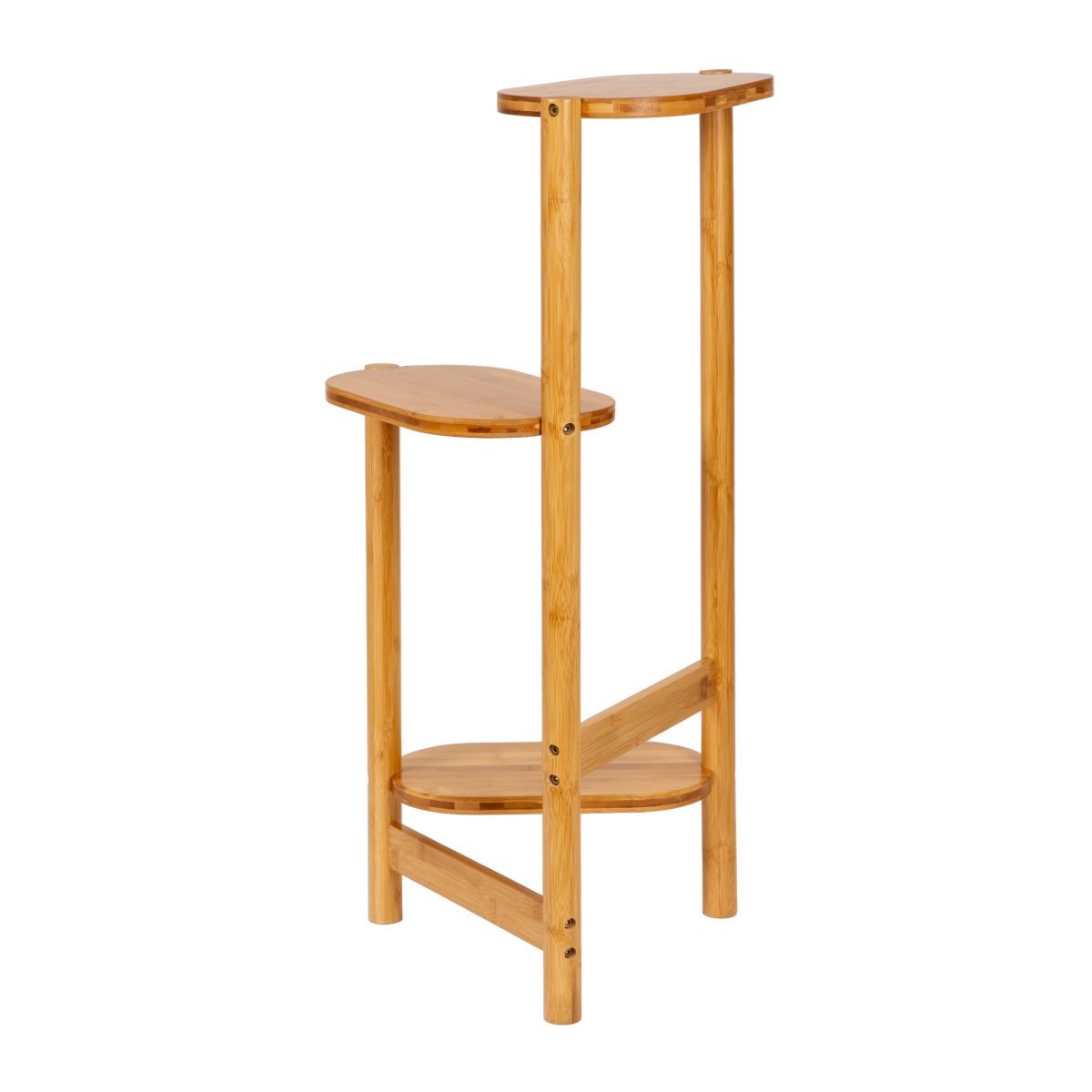 Deze plantenhouder is zo ontworpen dat je er met gemak 3 verschillende planten op kunt plaatsen. Elk van de ovale planken heeft voldoende ruimte voor een plantenpot. Daarbij zijn de plateaus zo geplaatst dat de planten alle ruimte hebben om te groeien. Ze zullen elkaar niet snel in de weg zitten. Kies daarom jouw favoriete planten en zet ze samen op dit plantenrek binnen op een schitterende plek.