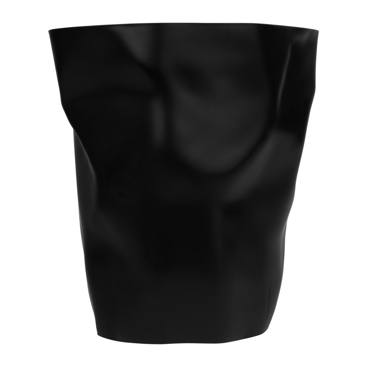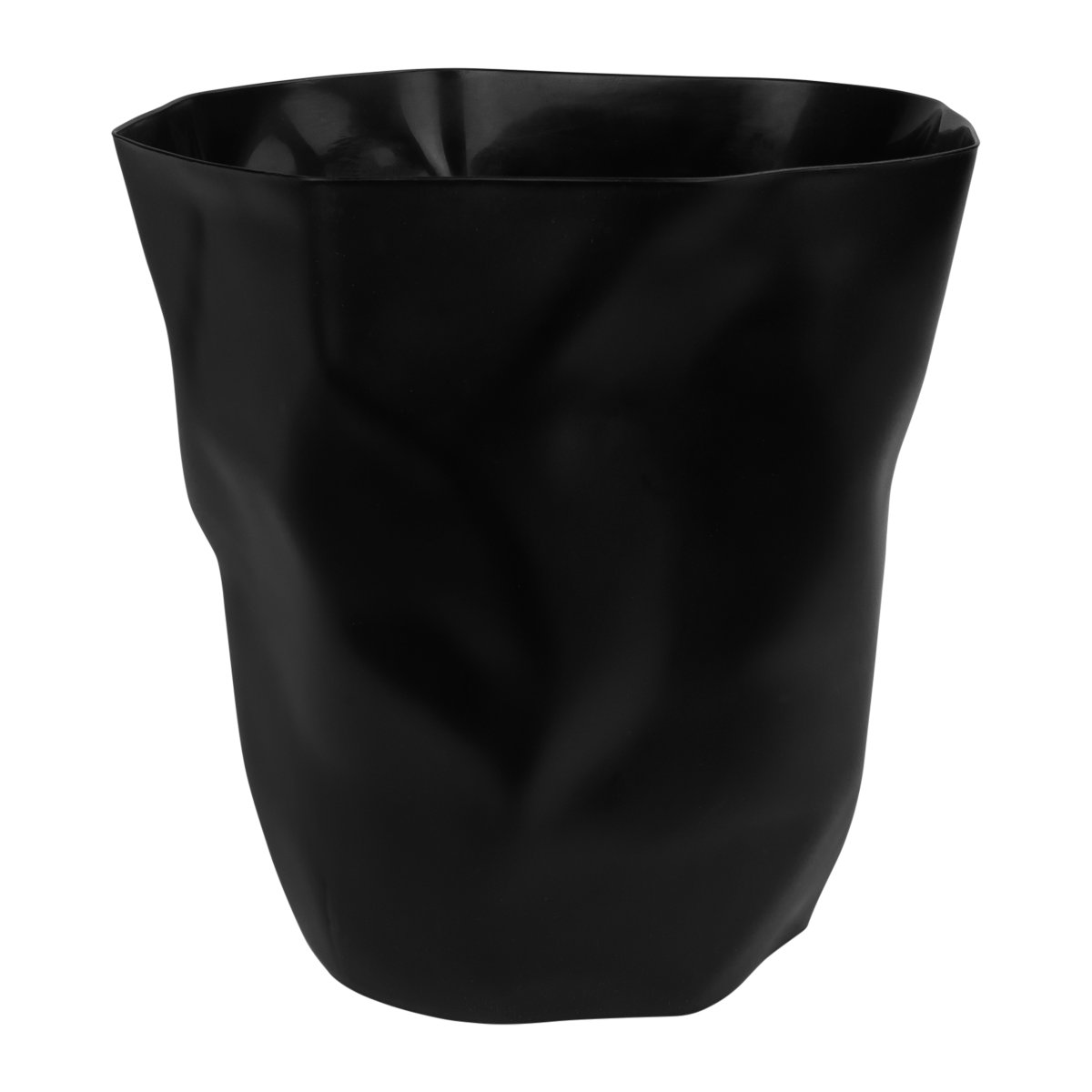 Een prullenbak met gekreukt design in het zwart