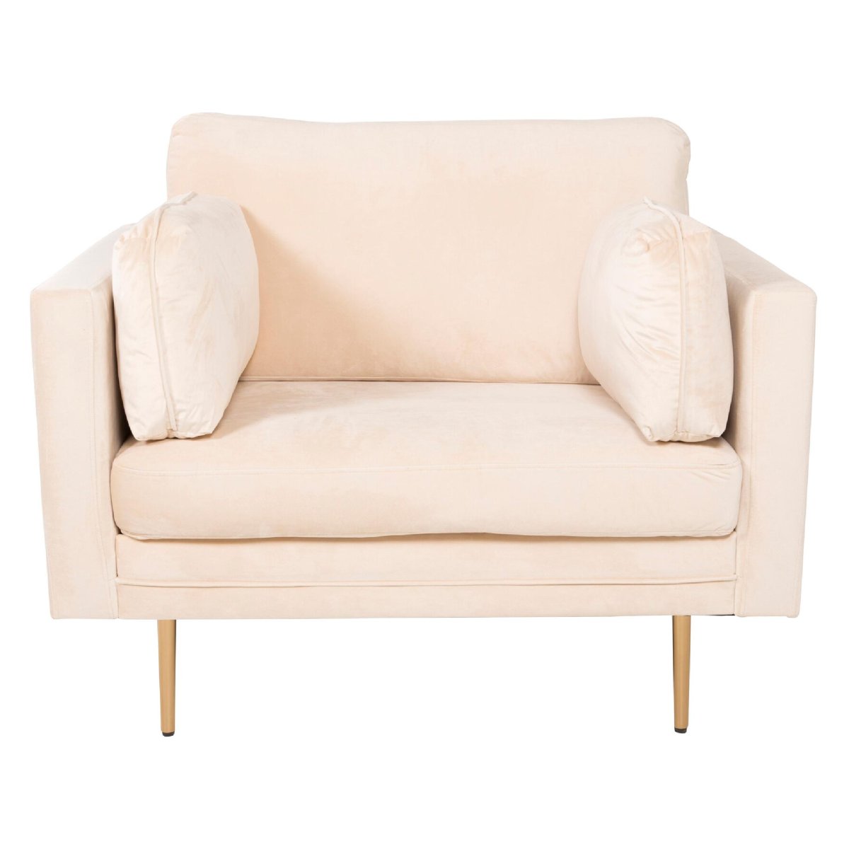 Ontdek de tijdloze elegantie van de QUVIO Rochester – Single Stoel Velvet – Crème. Deze moderne accentstoel combineert hoog comfort met een stijlvol design, perfect voor elke woonkamer. De zachte, licht beige fluwelen bekleding straalt luxe uit, terwijl de slanke, gouden stalen poten een luchtige en uitnodigende sfeer creëren. Met zijn doordachte ontwerp en beklede rugleuning is deze Fauteuil ideaal om centraal in de kamer te plaatsen. Gebruik hem als stijlvol solo-item of combineer met andere meubels uit de Rochester-serie voor een harmonieuze uitstraling.