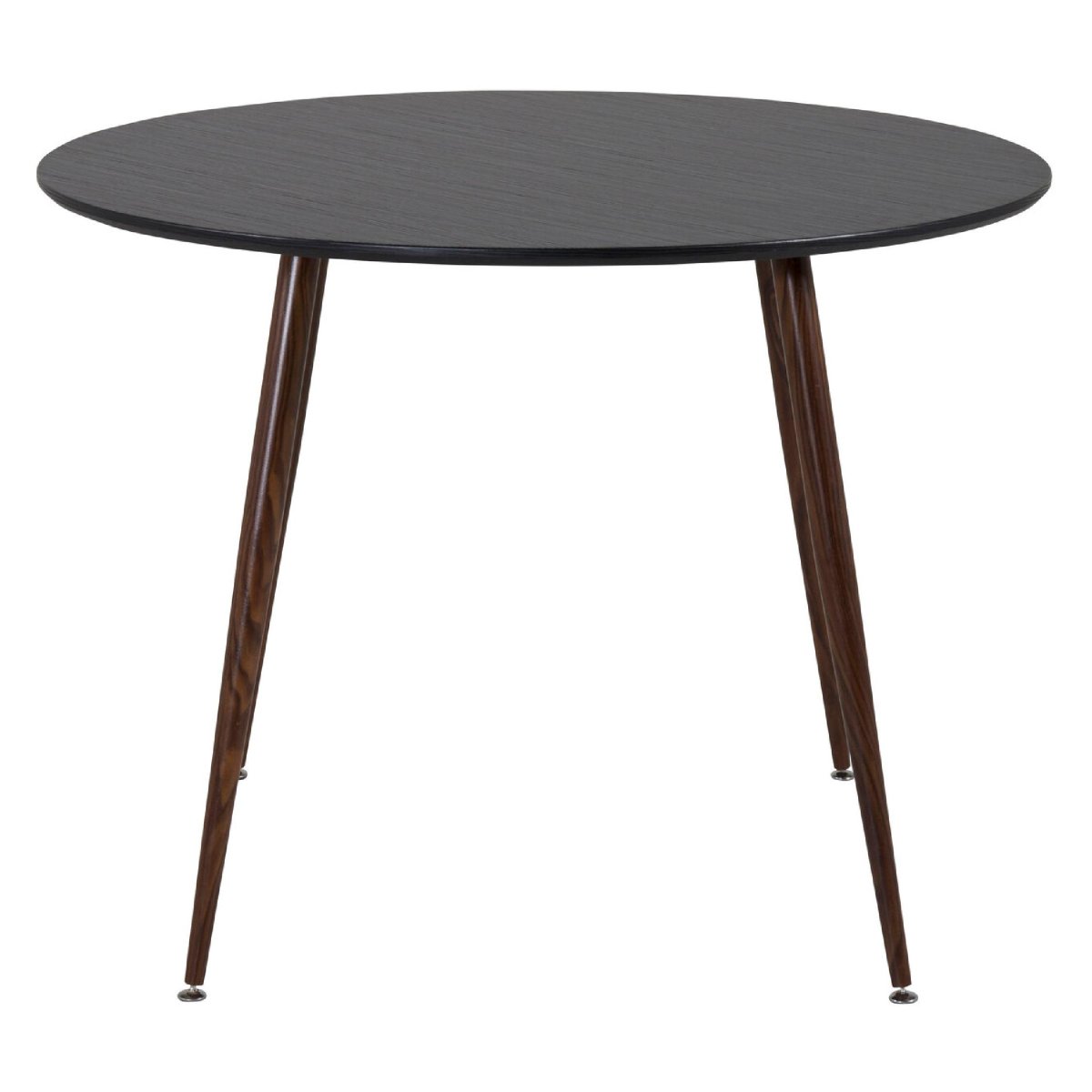 Deze ronde eettafel is ontworpen met het oog op gebruiksgemak. Het ronde ontwerp zorgt ervoor dat iedereen gemakkelijk bij elkaar kan zitten, wat ideaal is voor sociale gelegenheden. Het zwarte tafelblad is eenvoudig schoon te maken, waardoor je meer tijd hebt om te genieten van je maaltijden en minder tijd kwijt bent aan schoonmaken.