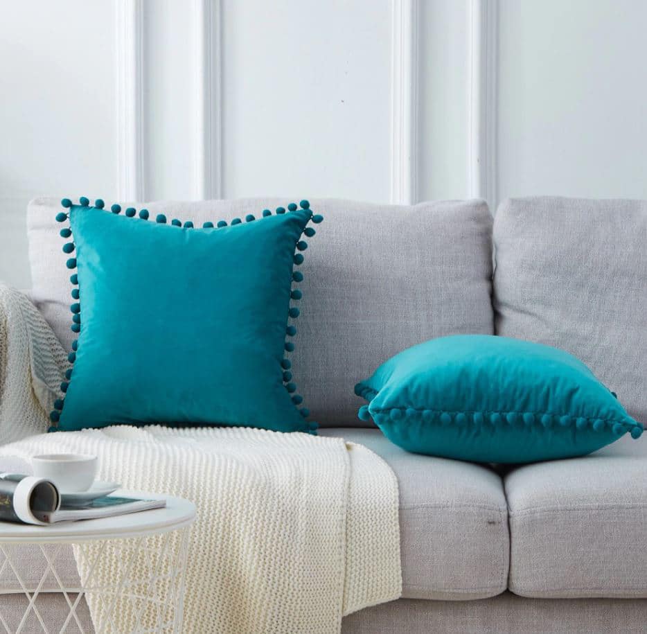 Met kussens verander je in een handomdraai de sfeer van een kamer. Dit werkt goed in de zithoek in de woonkamer, maar ook bijvoorbeeld op de slaapkamer of in een leeshoekje. Zoek jij een manier om wat extra luxe toe te voegen aan je woonstijl? Dan past dit QUVIO turquoise fluweel gevuld sierkussen perfect. Het kussen van 50 x 50 centimeter heeft een fluwelen hoes. Hierdoor ziet het er niet alleen heel zacht, maar ook nog eens heel stijlvol uit. Daarbij zitten er langs de randen leuke bolletjes, die het geheel een speels tintje meegeven. Het geheel is een schitterende kussenhoes met vulling, waarmee je een ruimte direct extra sfeer geeft.