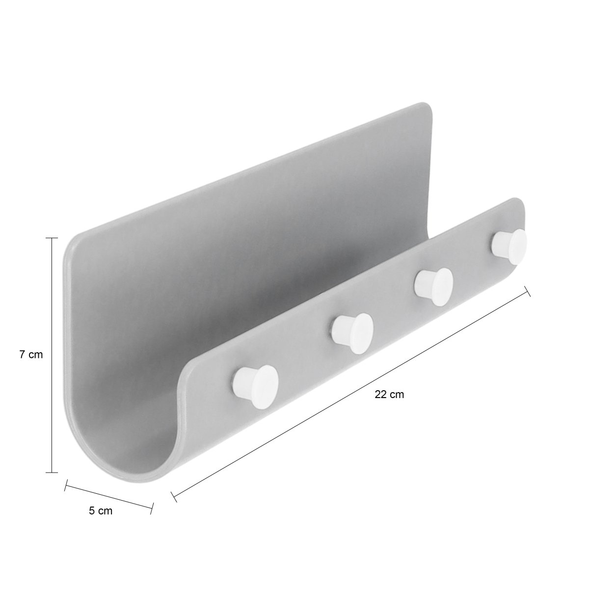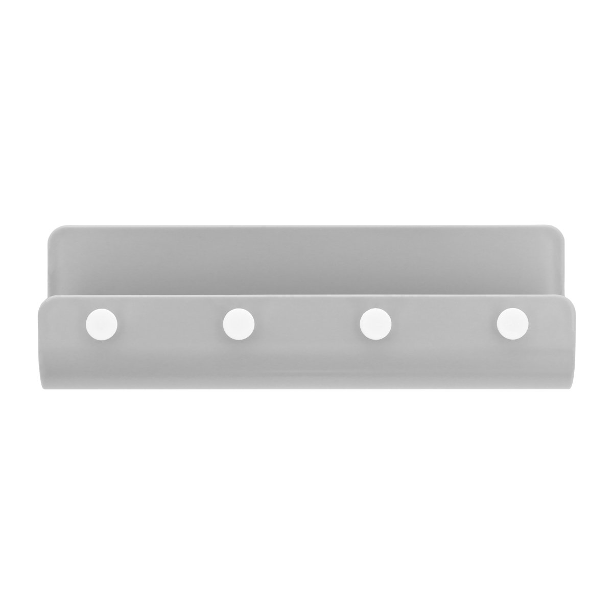 Klein maar fijn. Dit QUVIO sleutel rekje met postopberger neemt niet veel ruimte in met een hoogte van 7 cm, lengte van 21 cm en breedte van 3 cm. Als dat geen meevaller is! Neem er dan nog eens bij dat het rek uitblinkt in z’n looks: modern en strak. Z’n mooie grijze uiterlijk past in elk interieur. Met hem zit je altijd haaks. De witte haken zijn kindvriendelijk en kunnen een gewicht van 1 kg aan.